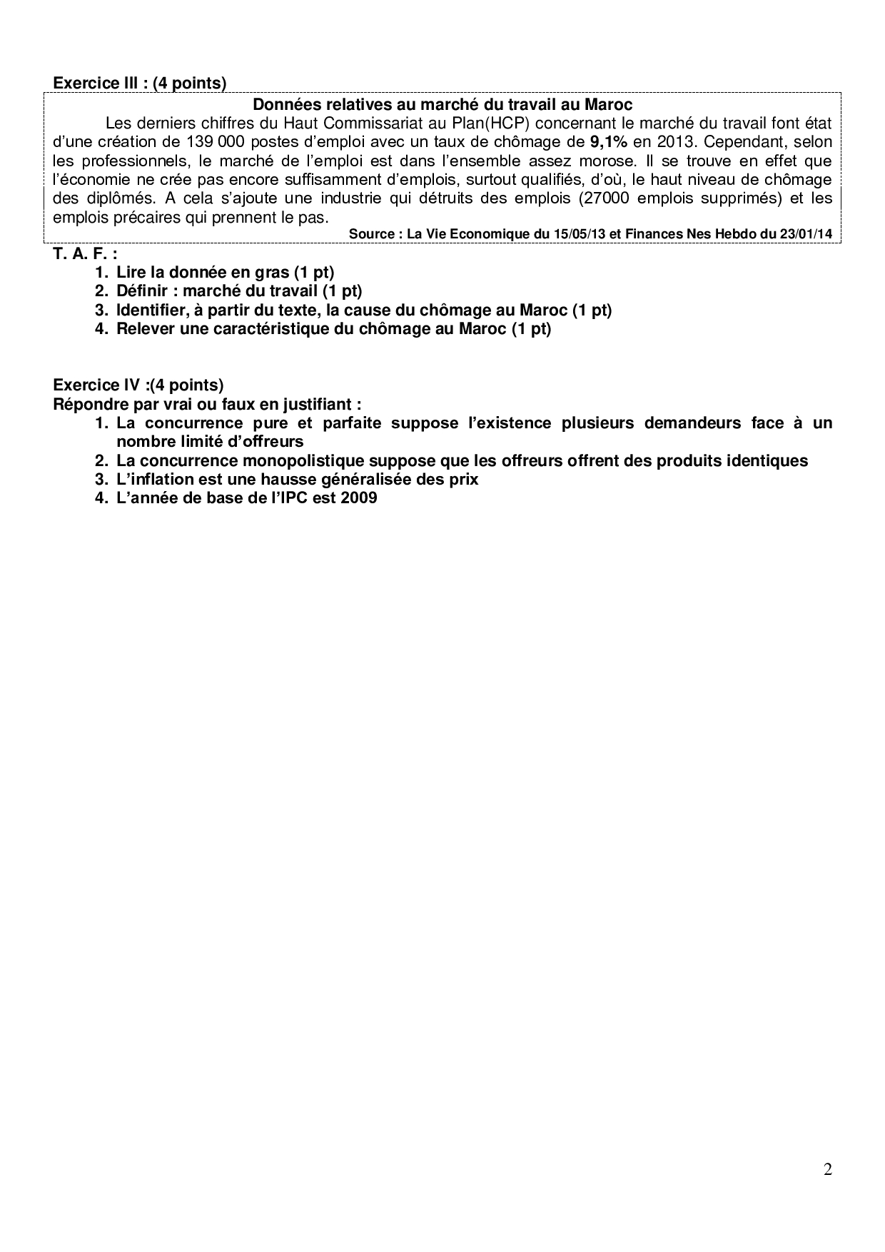 Économie générale et Statistiques : 2ème BAC Sciences de Gestion Comptable (SGC)