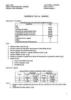Devoir 3 Modèle 2 - Statistiques 2 Bac SGC Semestre 1