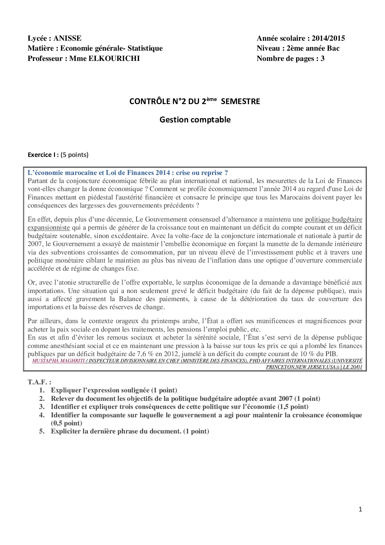 Économie générale et Statistiques : 2ème BAC Sciences de Gestion Comptable (SGC)