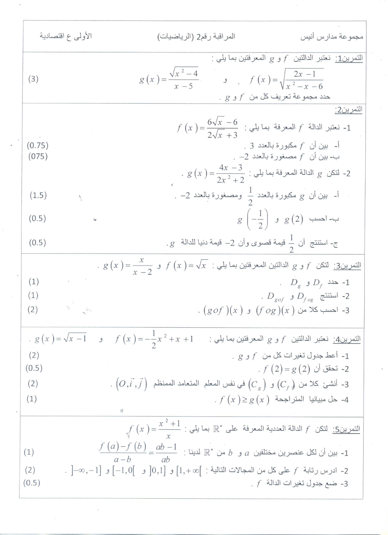 الفرض 2 نموذج 5 - الرياضيات أولى باك علوم إقتصادية الدورة الأولى