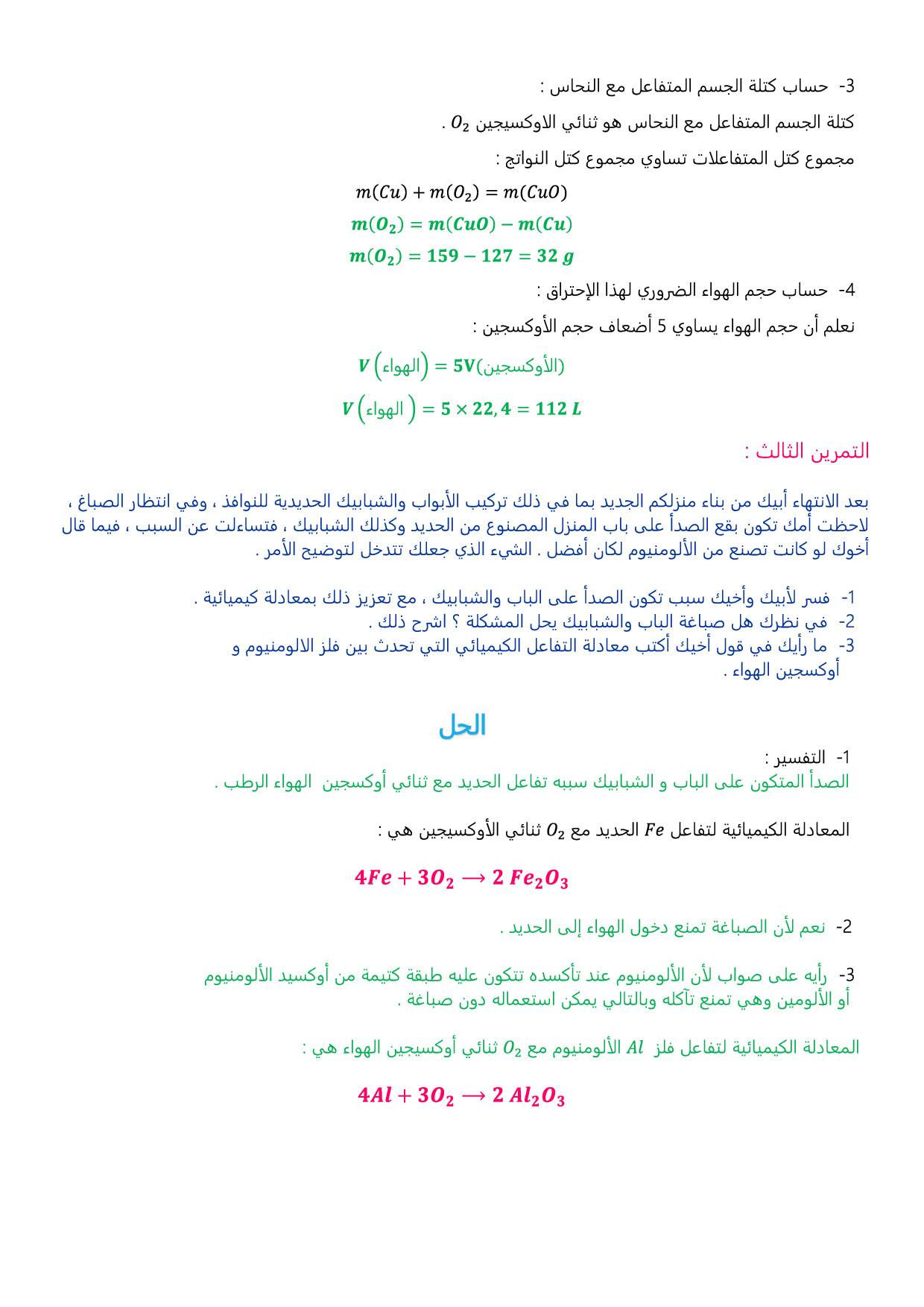 أكسدة الفلزات في الهواء - تمارين محلولة 1