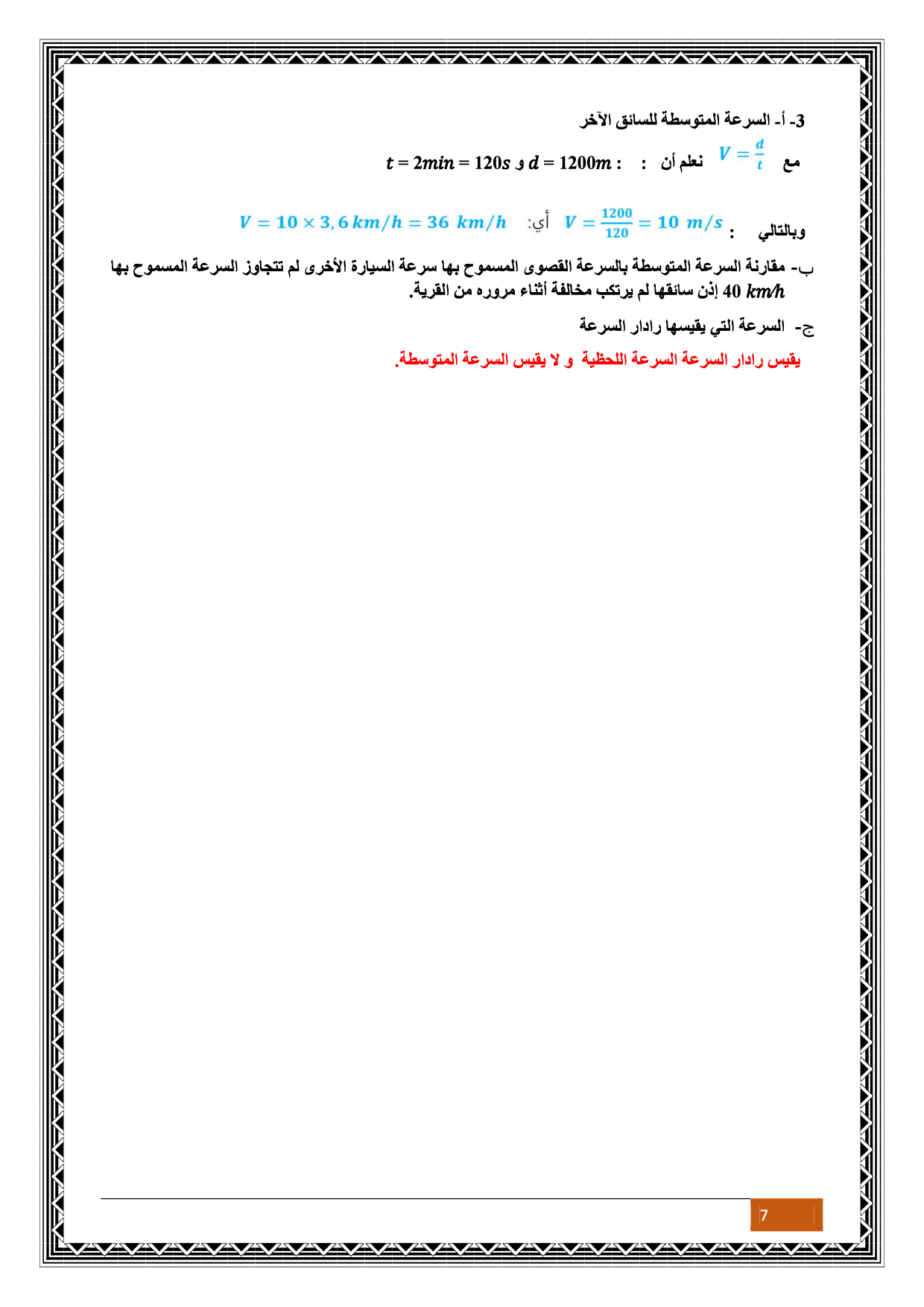 السرعة المتوسطة - تمارين محلولة 1