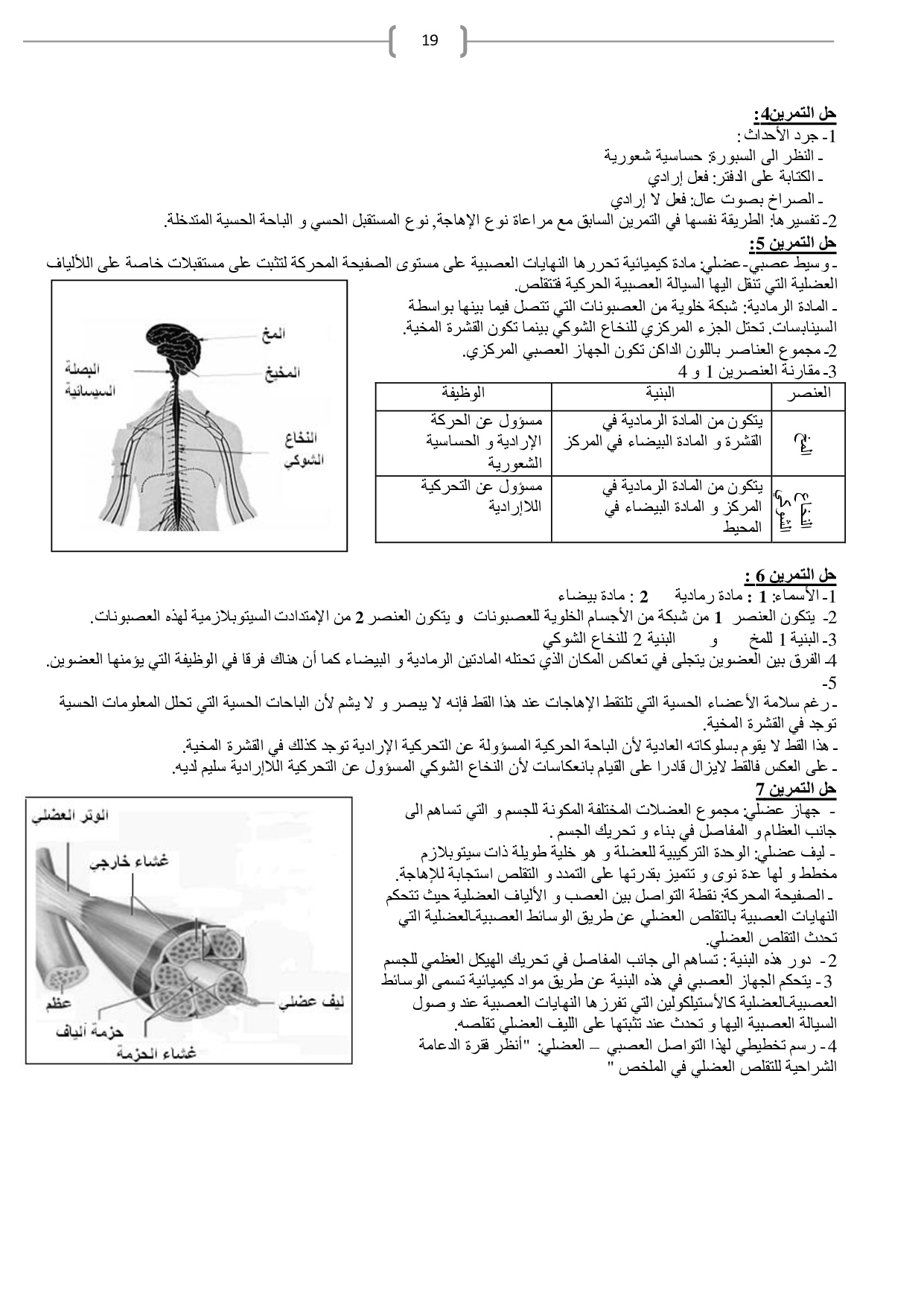 الجهاز العضلي والجهاز العصبي - تمارين محلولة