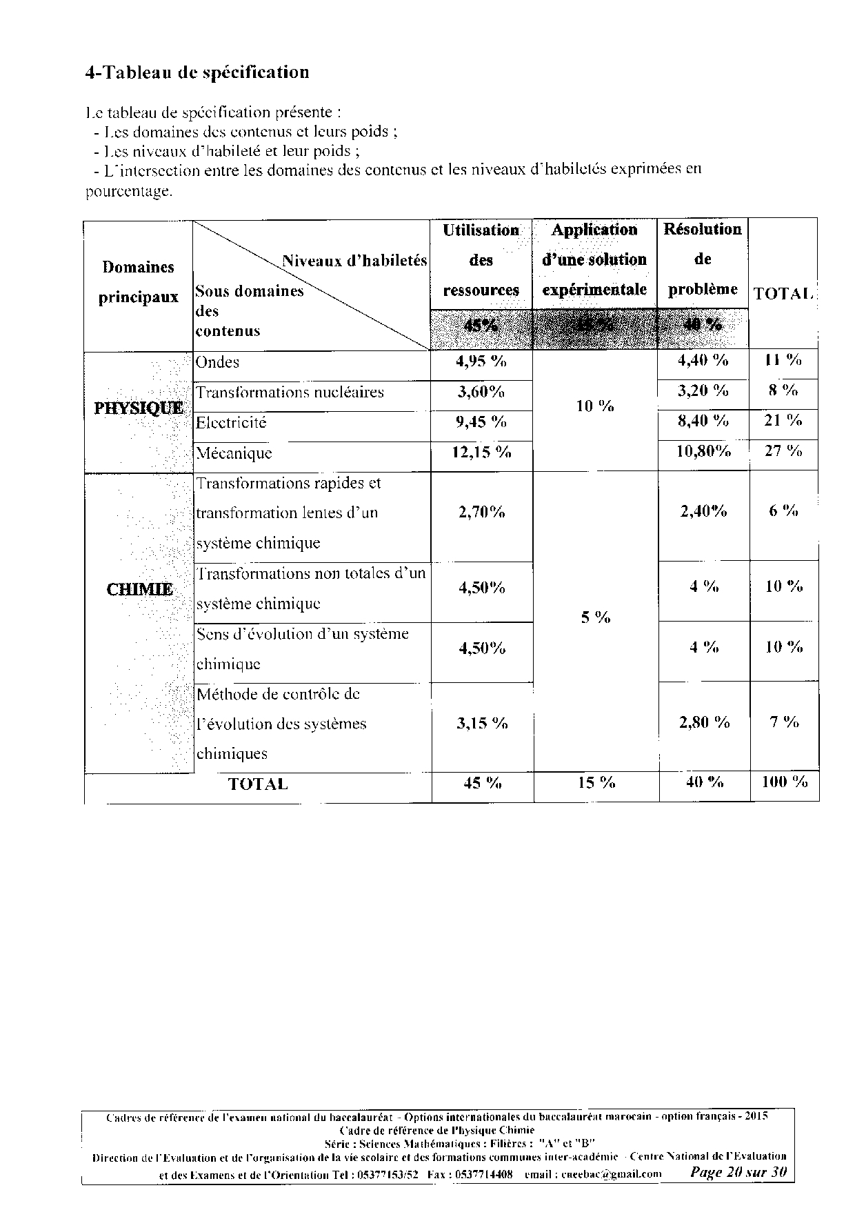 Cadre de référence de l'examen national - Physique-Chimie SM