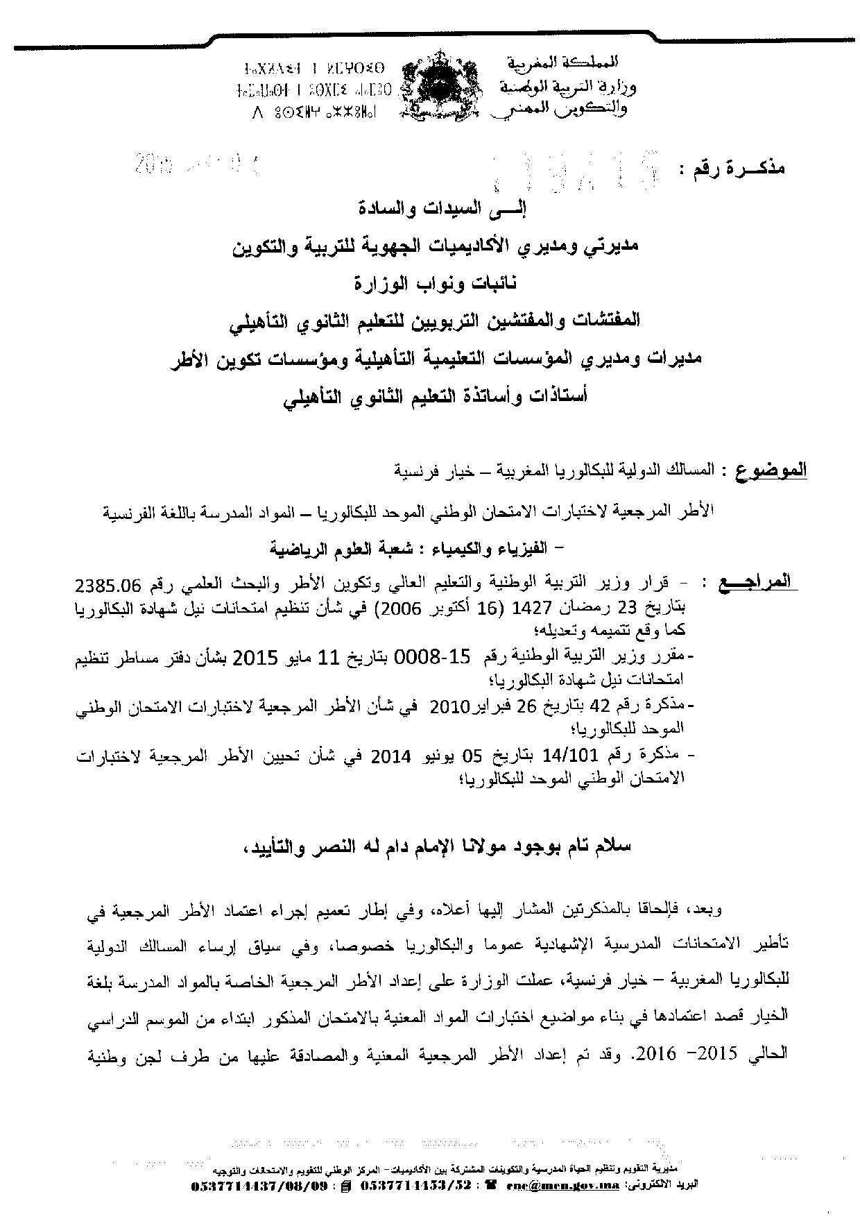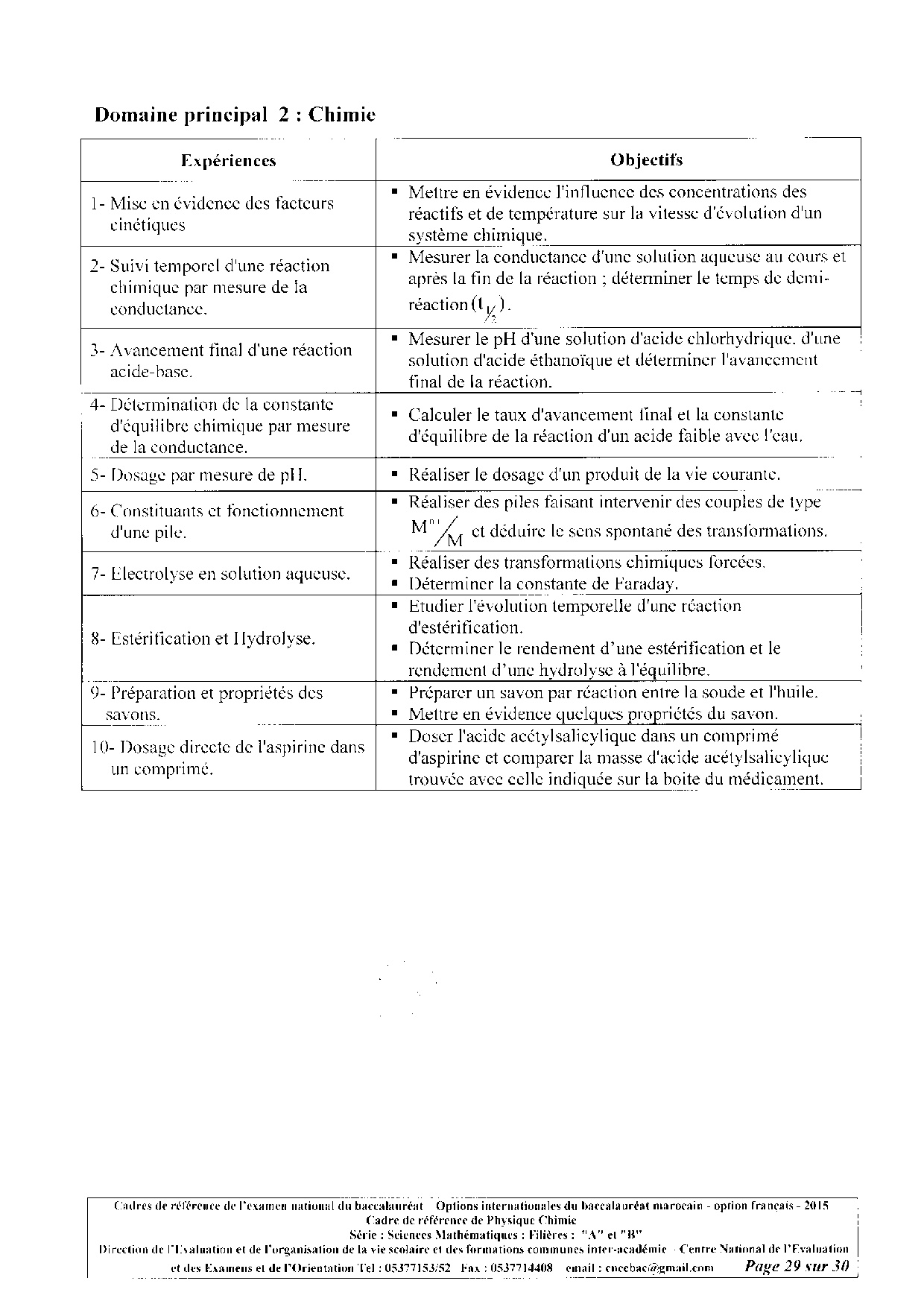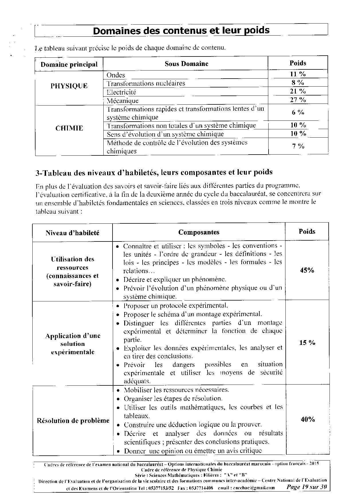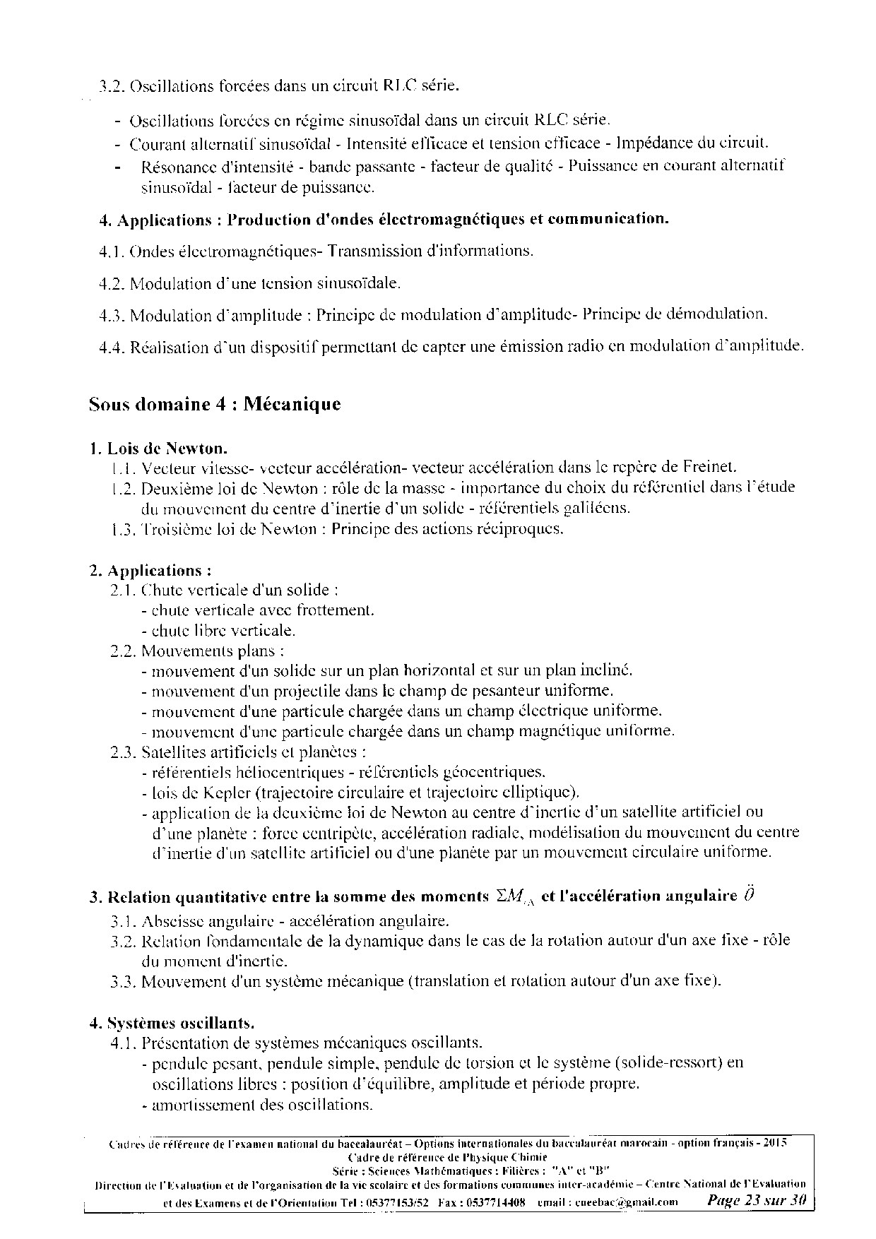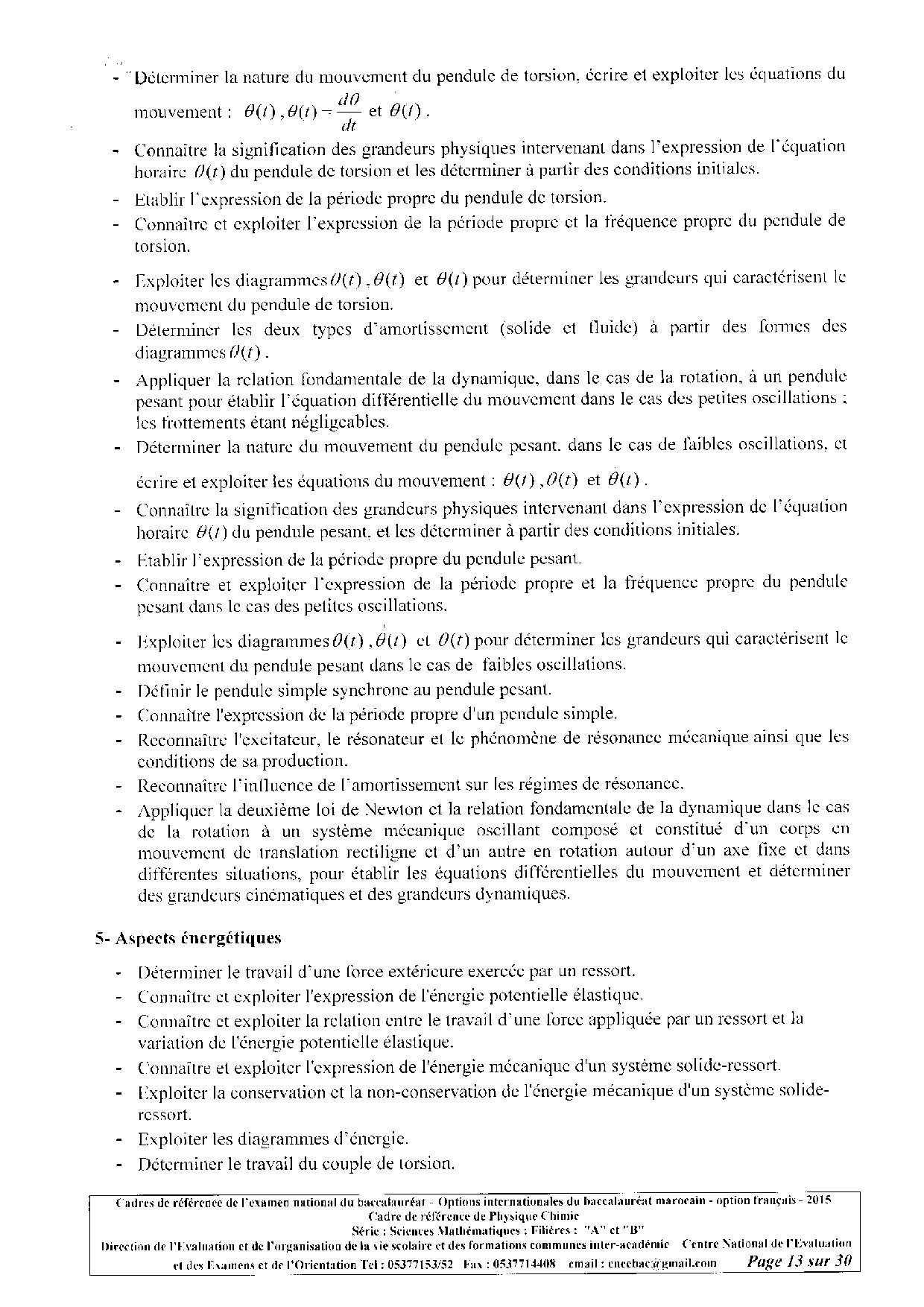 Cadre de référence de l'examen national - Physique-Chimie SM