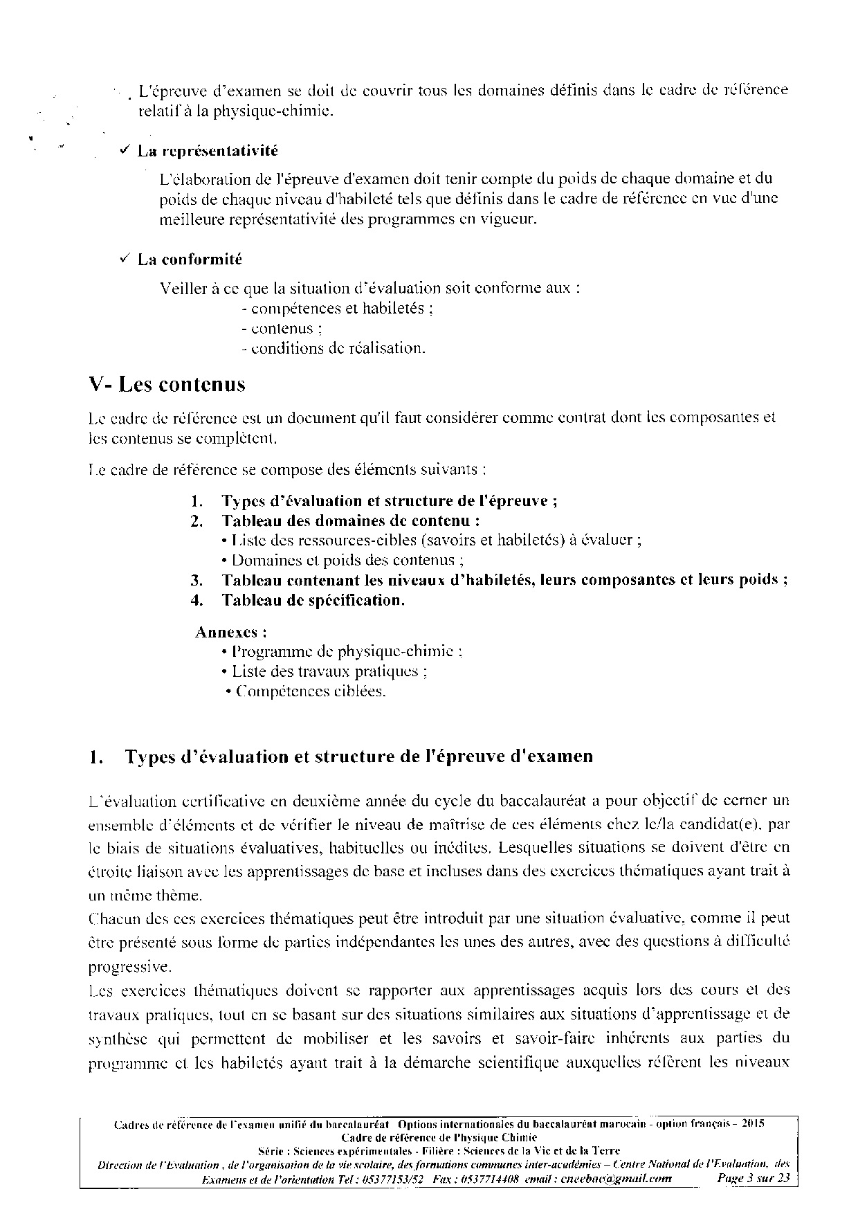 Cadre de référence de l'examen national - Physique-Chimie 2Bac SVT
