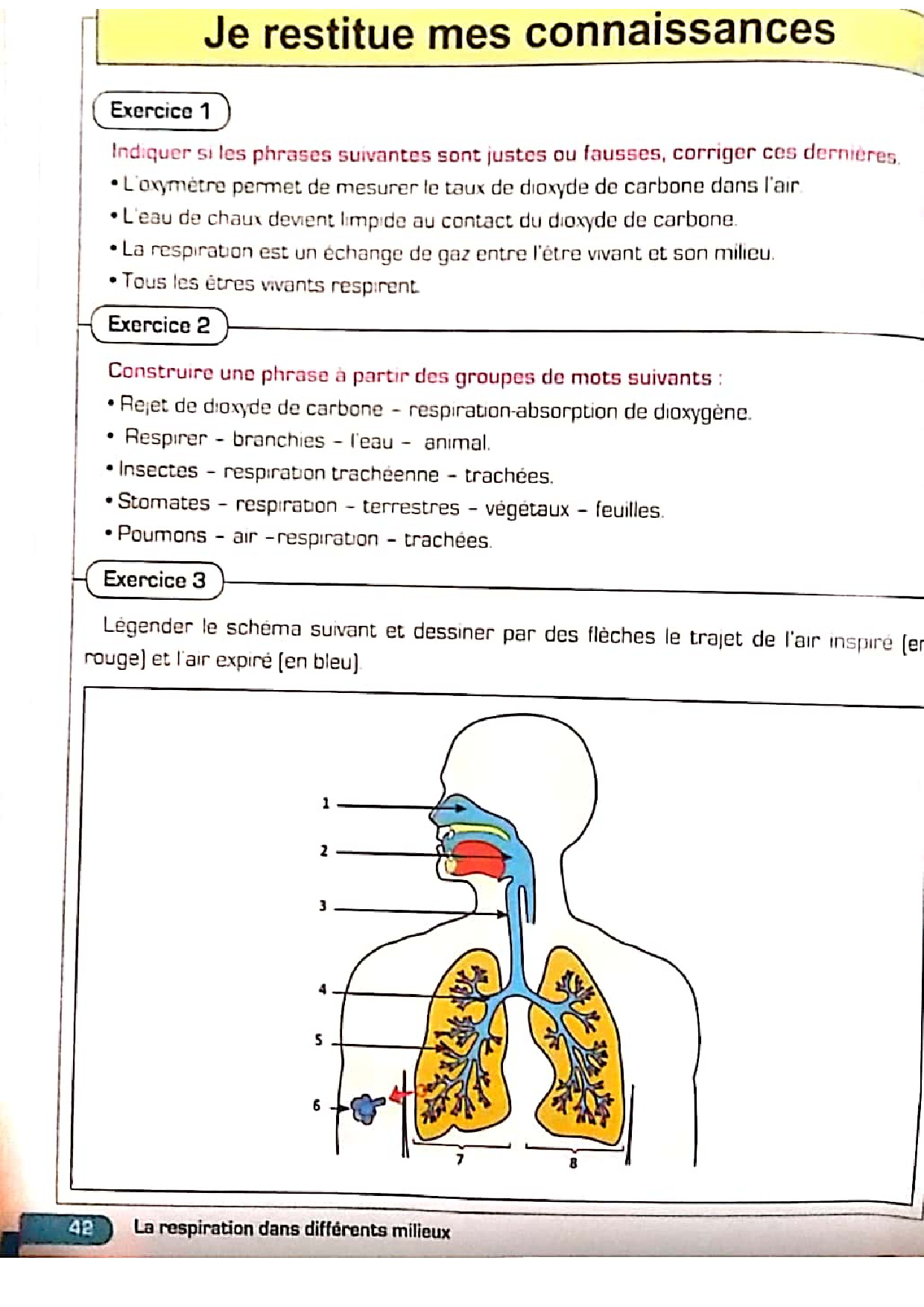 La respiration et milieux de vie des êtres vivants - Exercices (Manuel 3)