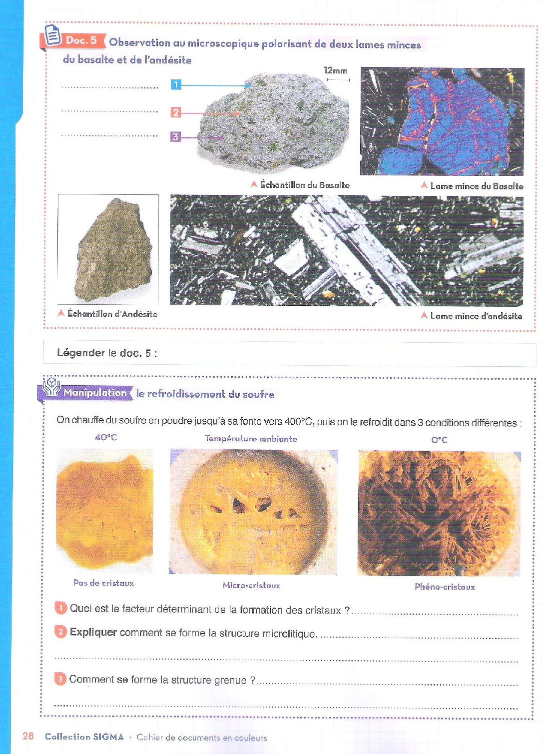 Les volcans et les roches volcaniques - Activités et exercices