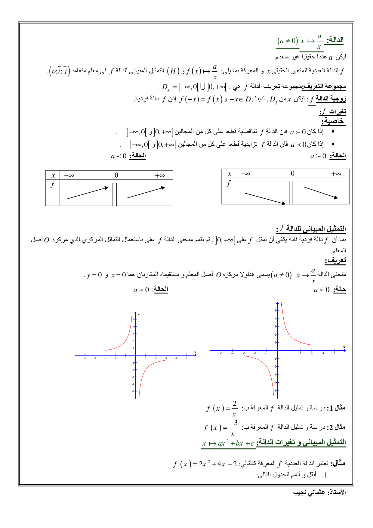 الدوال العددية - الدرس 1