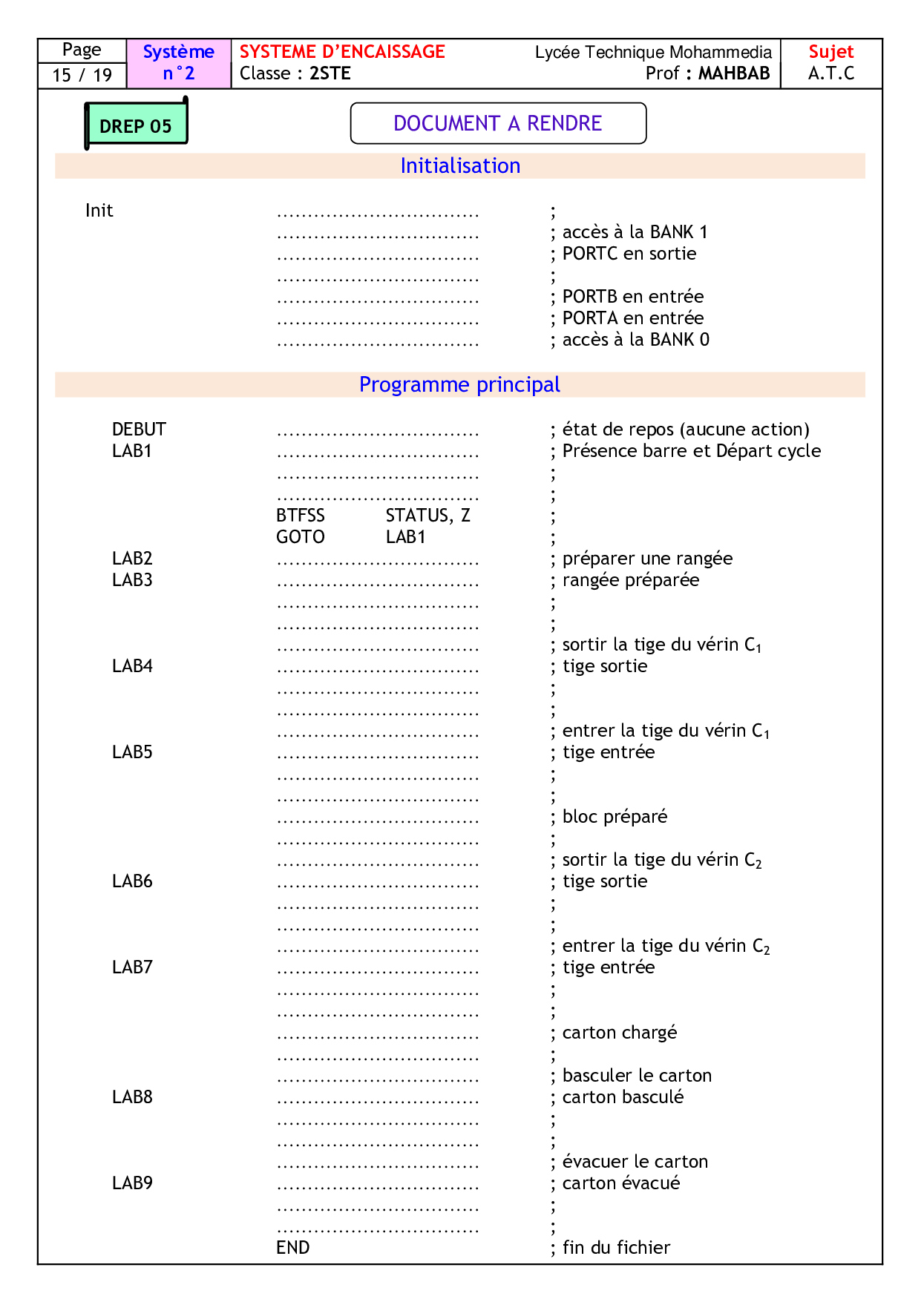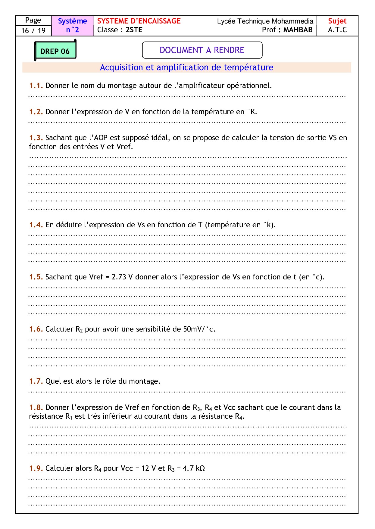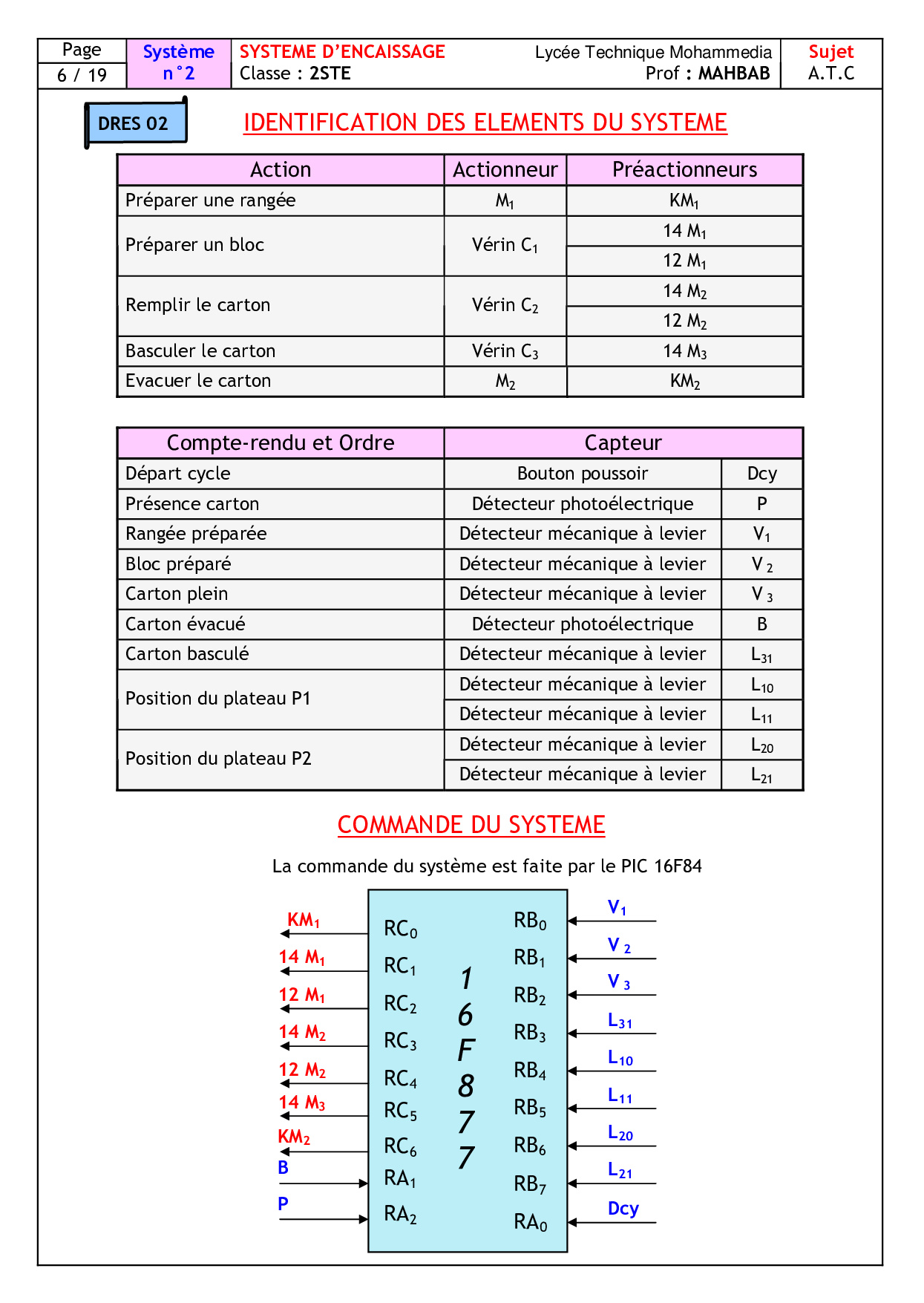 2- Système d'encaissage - Capteurs de température, Microprocesseur Pic 16F84, Langage Assembleur : Ennoncé