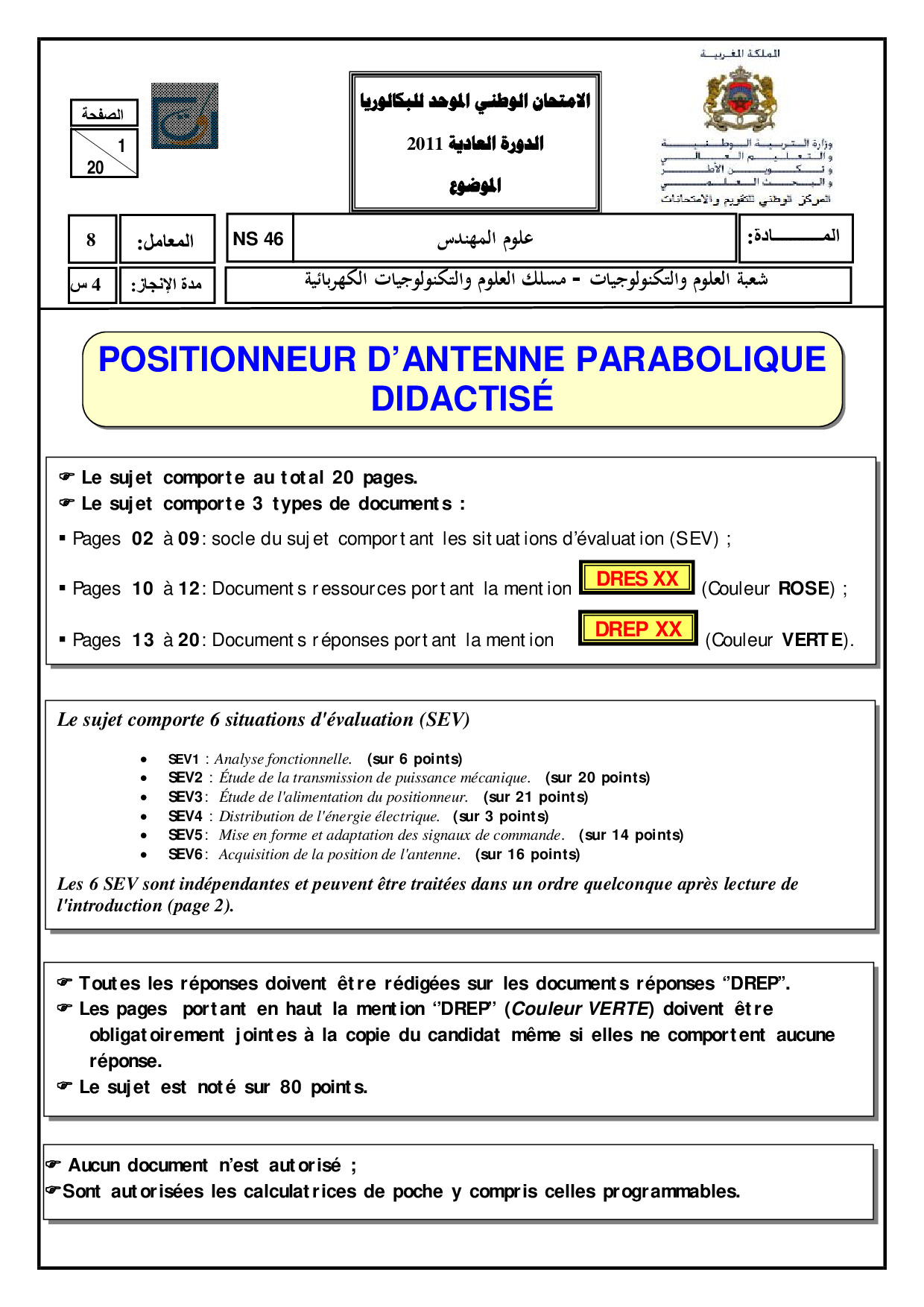 Examen SI 2 Bac STE 2011 Session Normale - Sujet