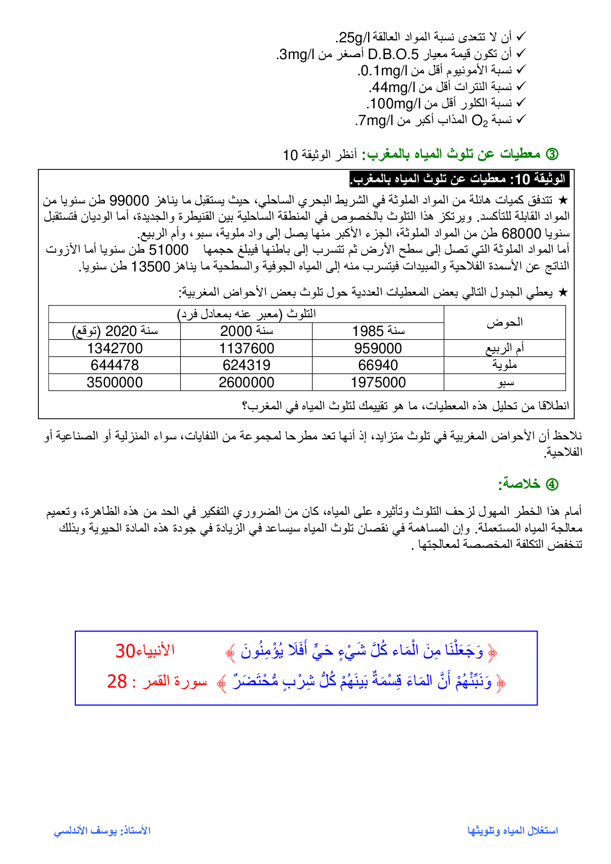 تلوث المياه - الدرس
