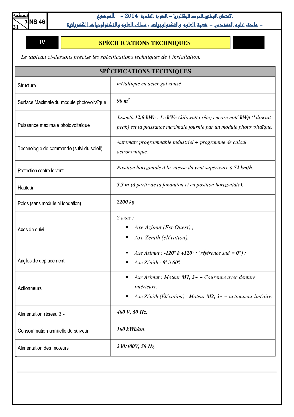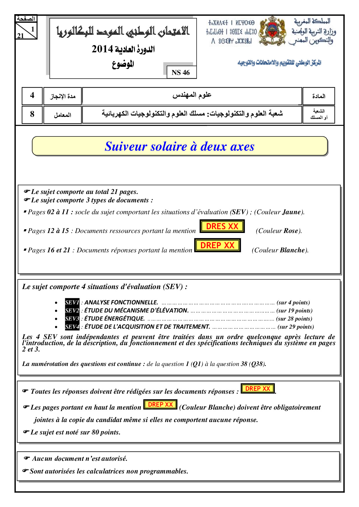 Examen SI 2 Bac STE 2014 Session Normale - Sujet
