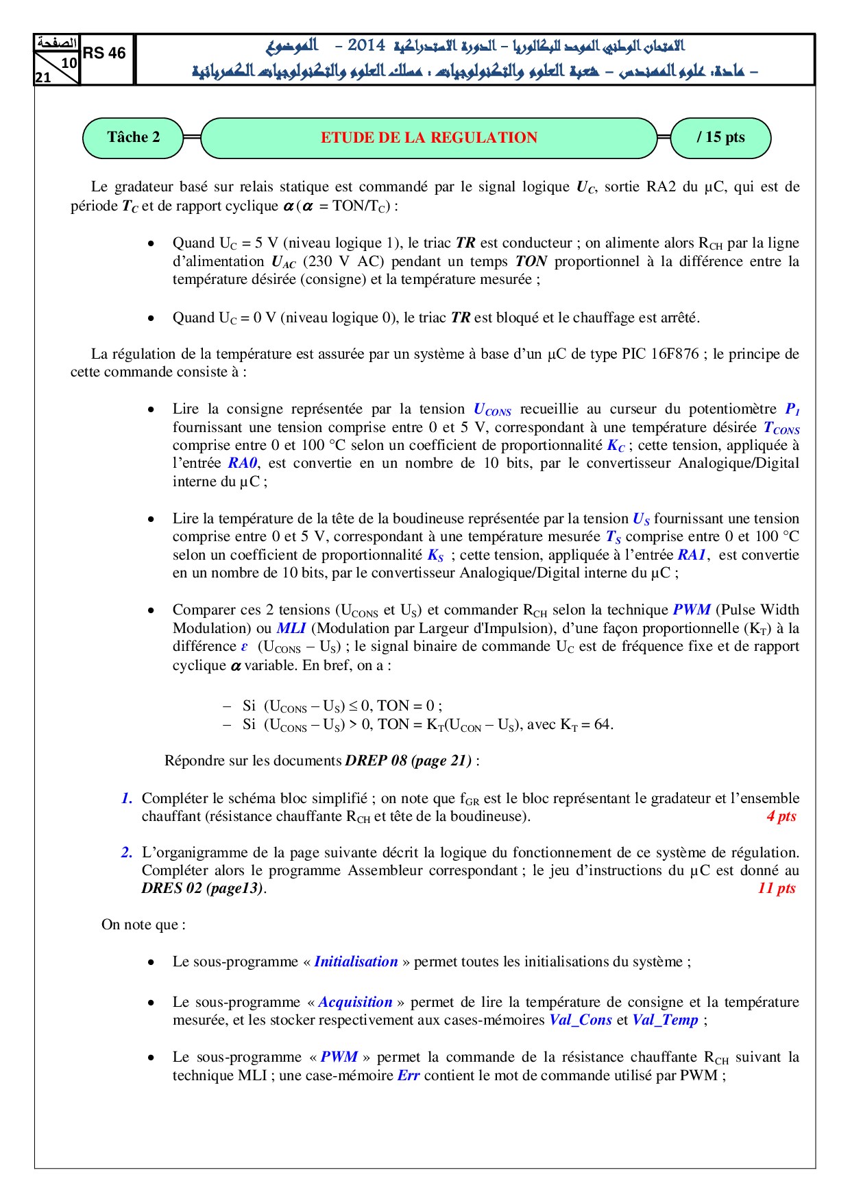 Examen SI 2 Bac STE 2014 Session Rattrapage - Sujet