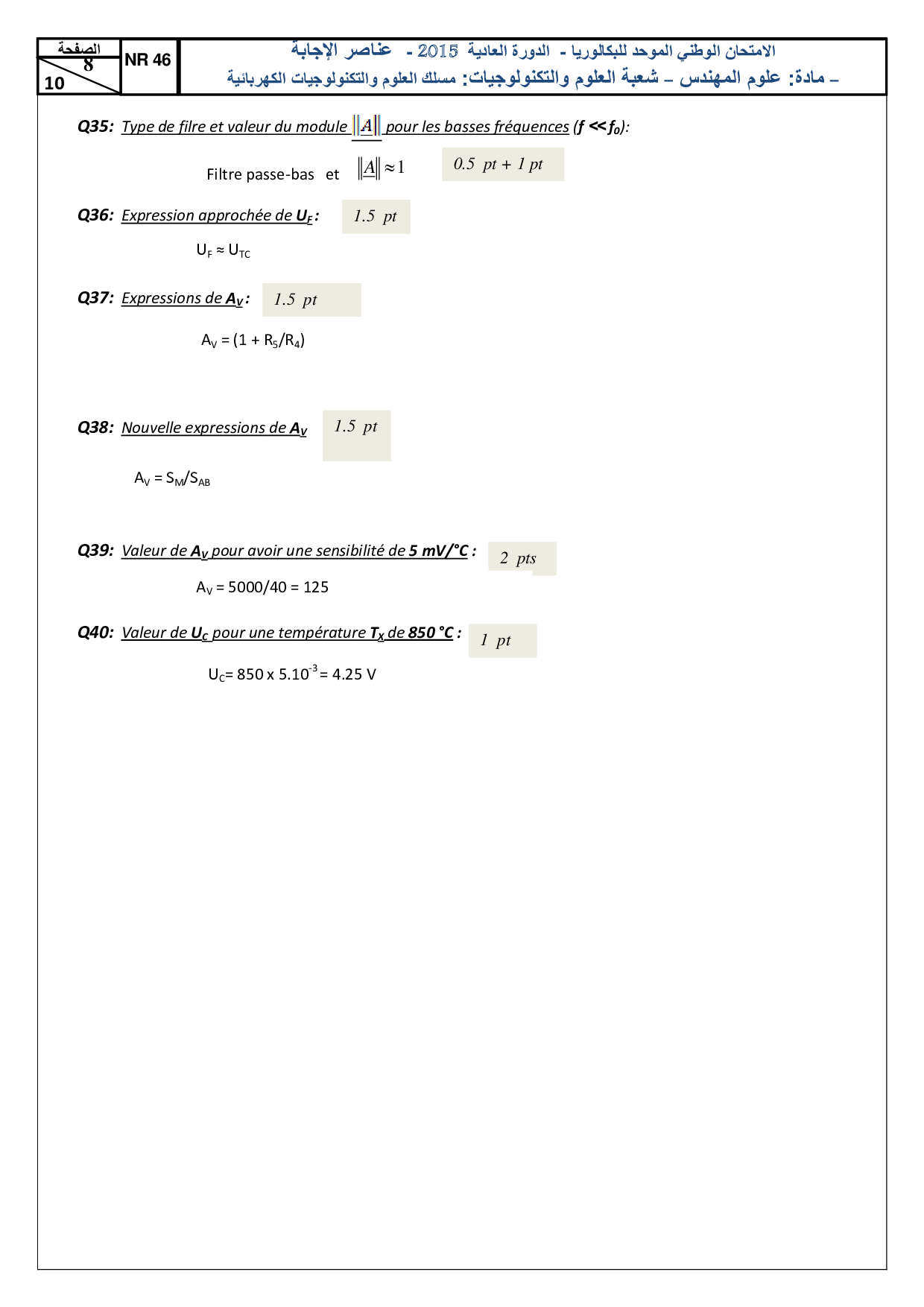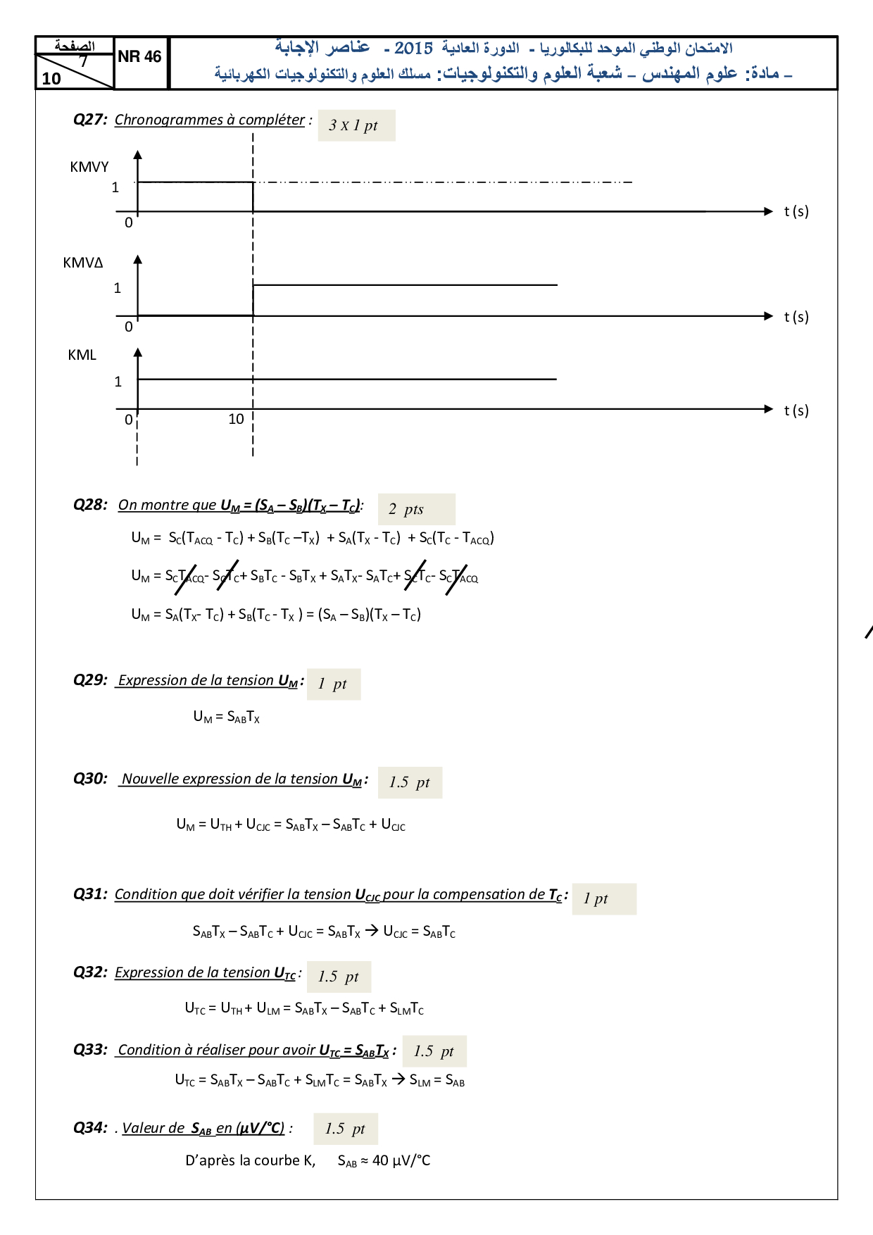 Examen SI 2 Bac STE 2015 Session Normale - Corrigé