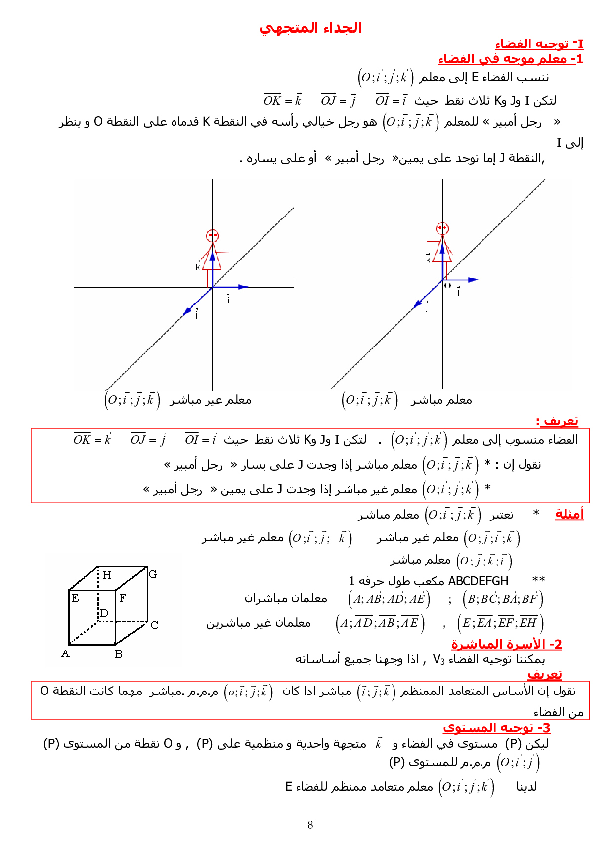 الهندسة الفضائية (الجداء السلمي في الفضاء - الفلكة - الجداء المتجهي)