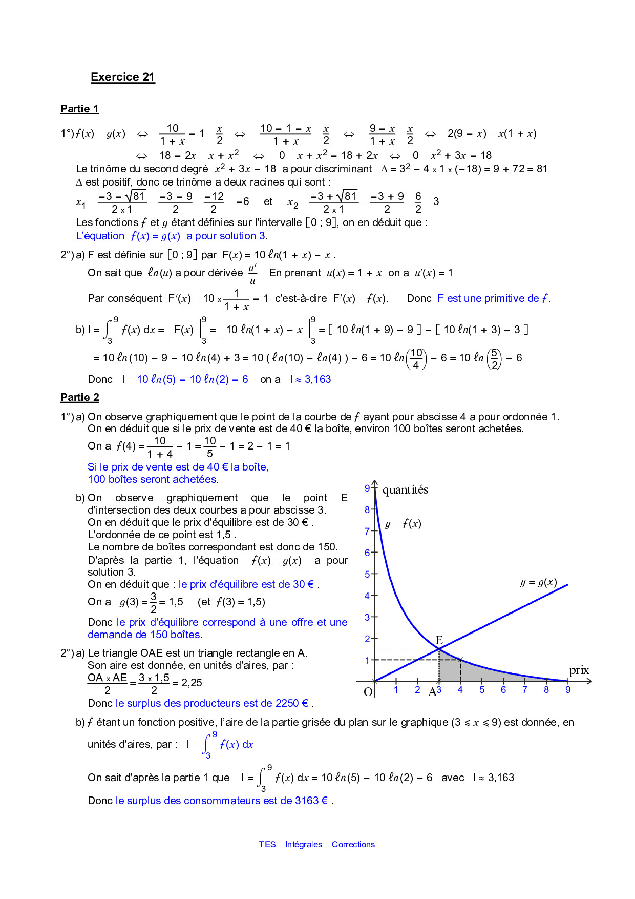 Intégrales - Corrigé série d'exercices