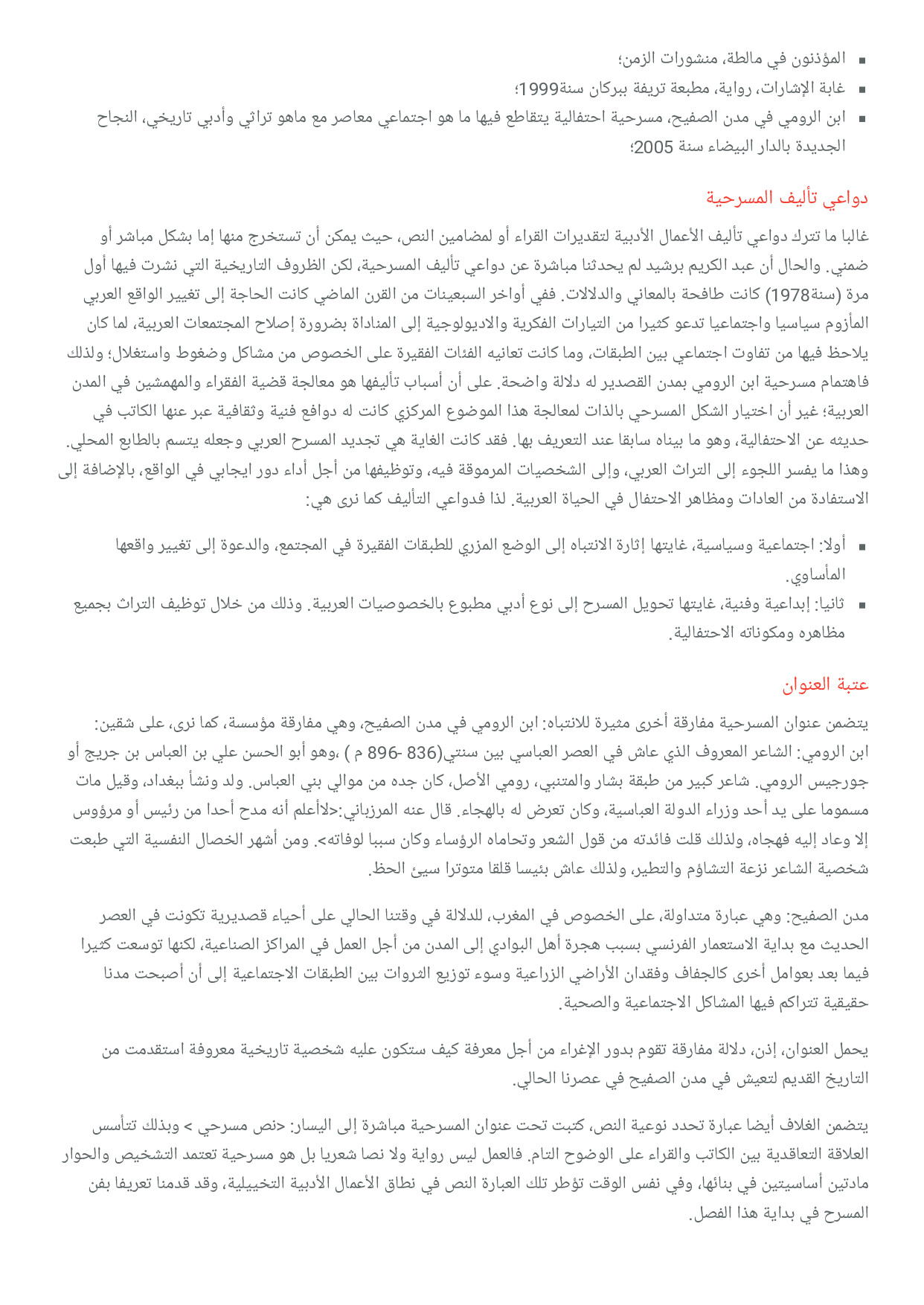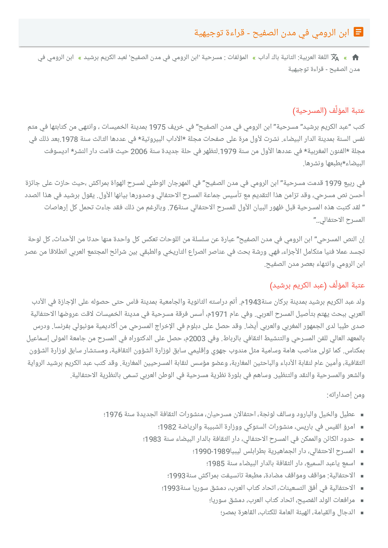 المؤلفات : مسرحية 'ابن الرومي في مدن الصفيح' لعبد الكريم برشيد