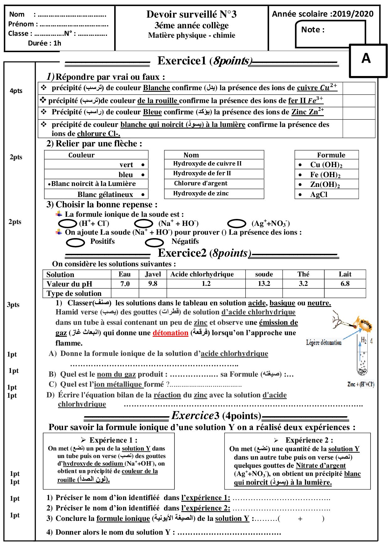 Devoir 3 Modèle 4 - Physique-Chimie 3AC Semestre 1