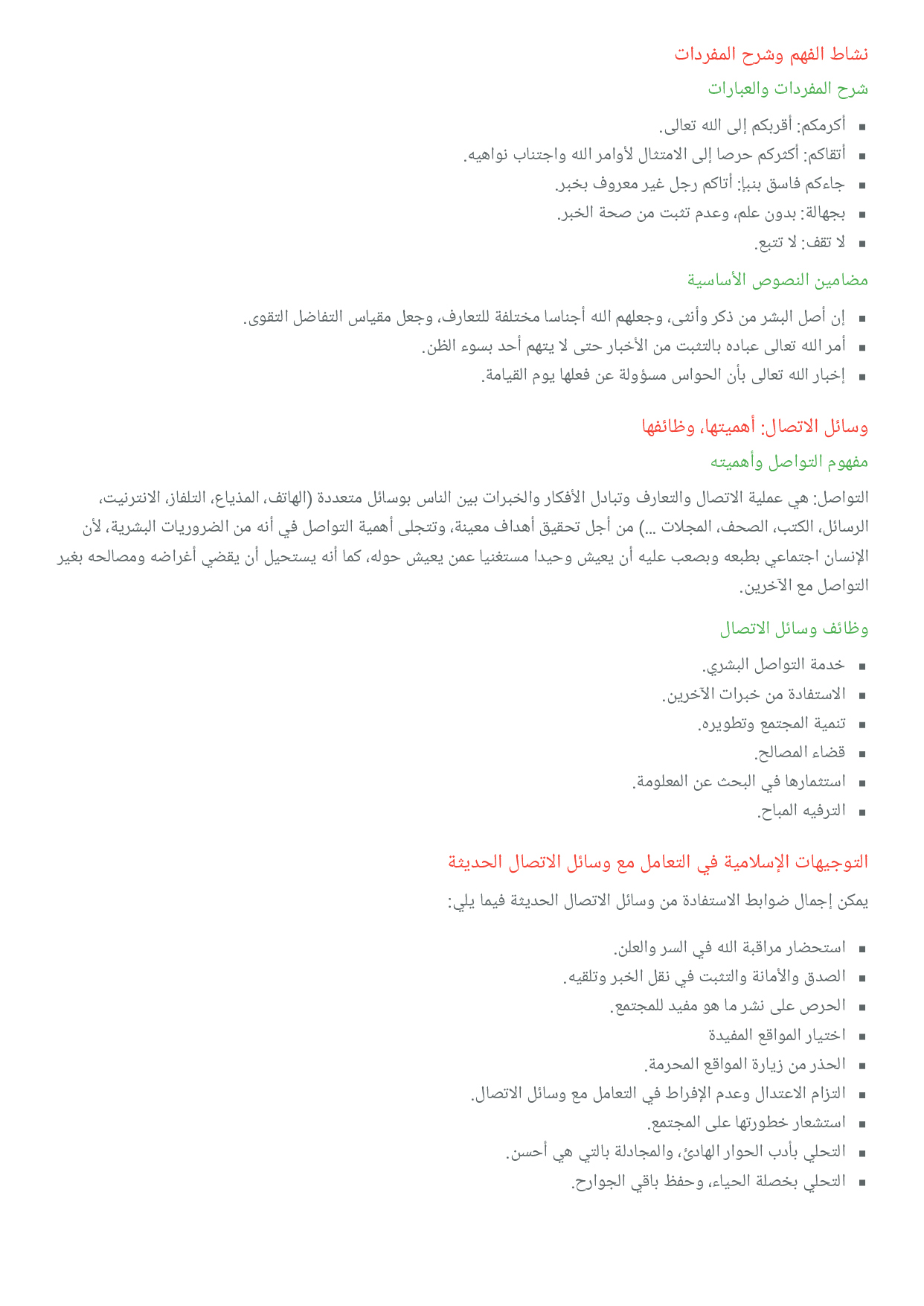 التربية الإسلامية: الأولى إعدادي