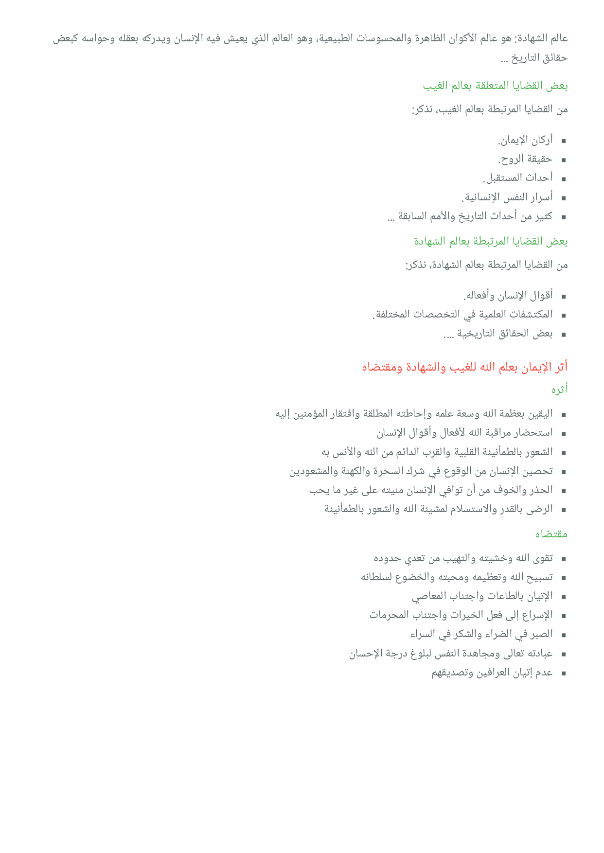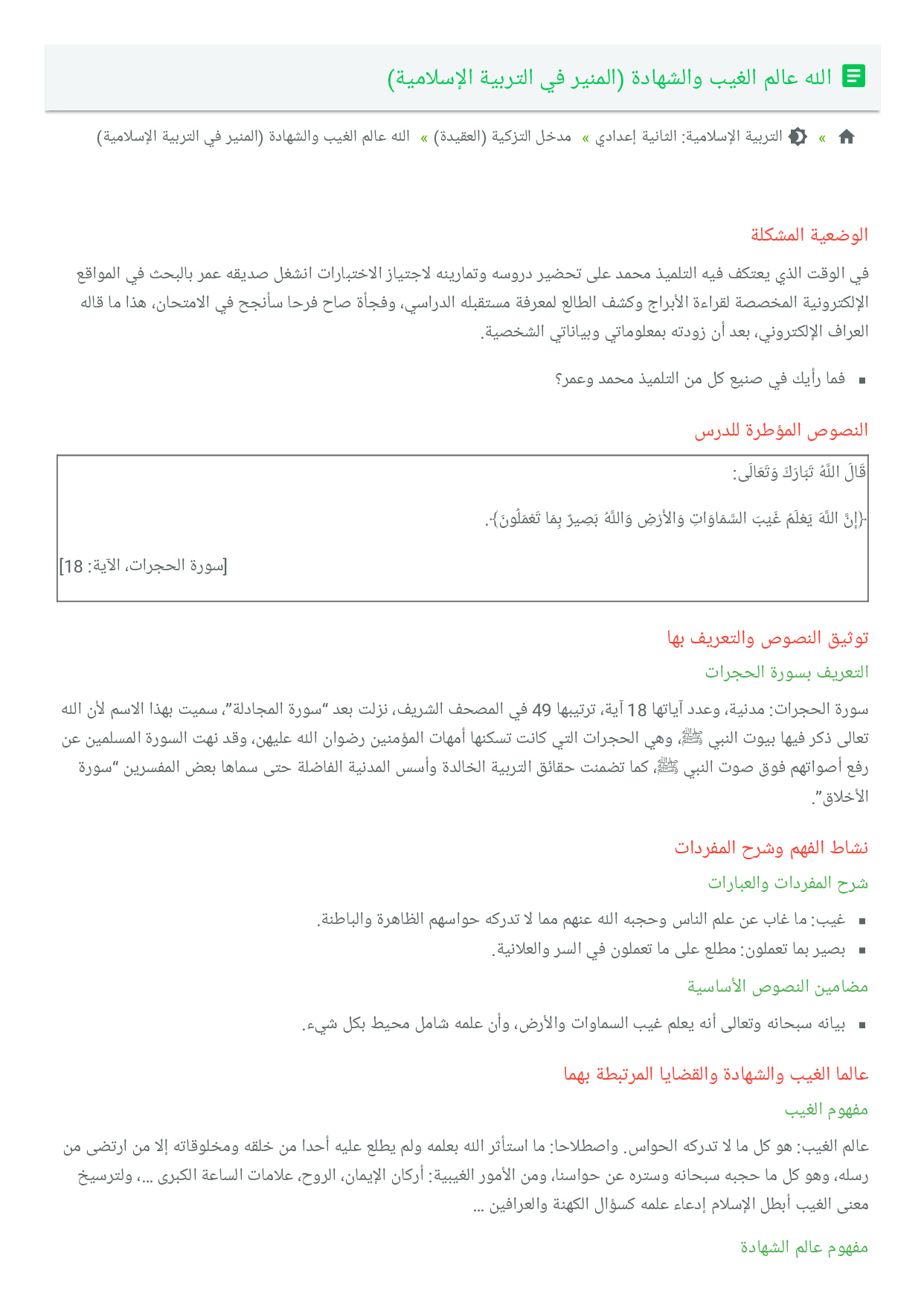 الله عالم الغيب والشهادة (المنير في التربية الإسلامية)