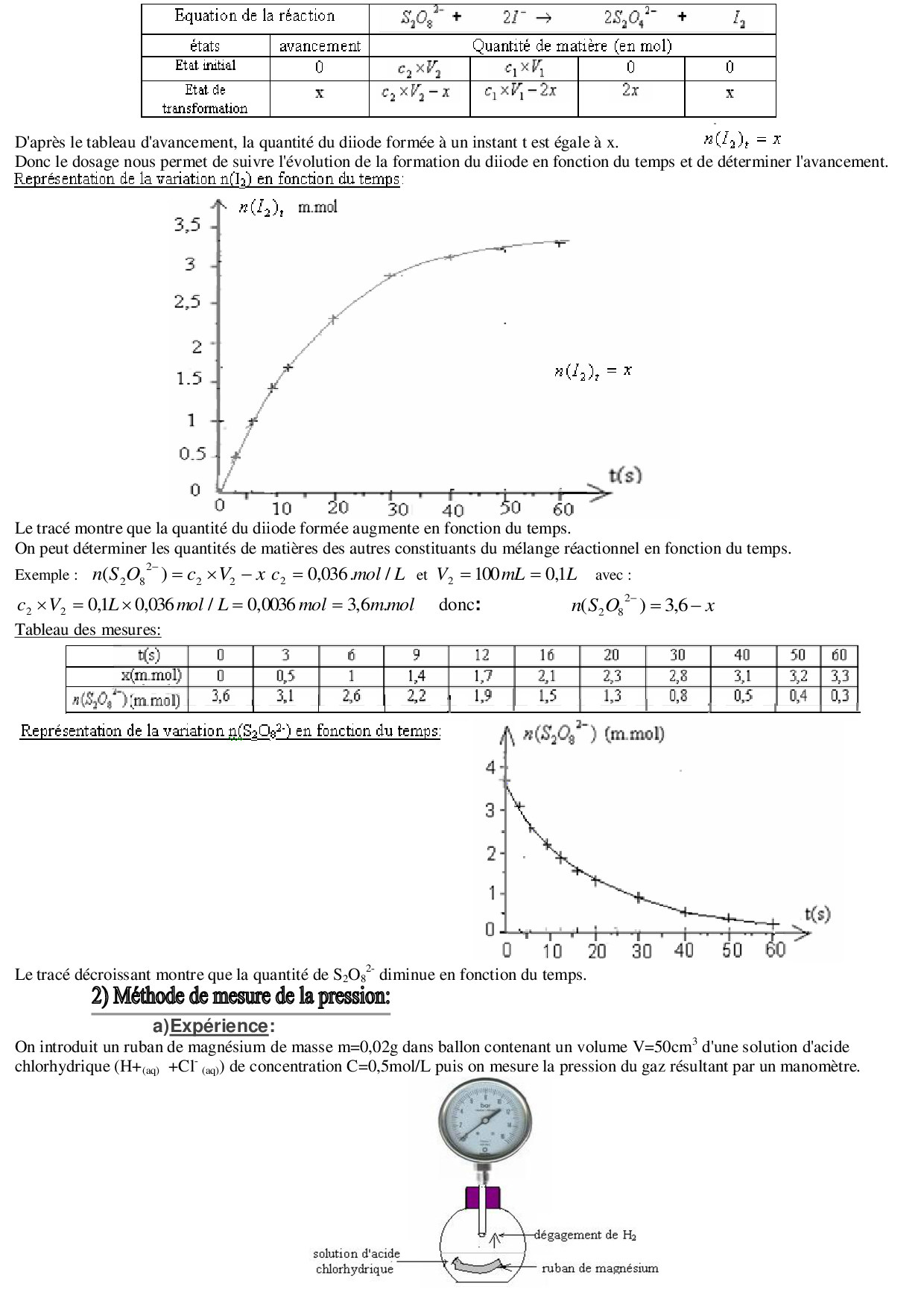 Suivi temporel d'une transformation chimique - Vitesse de réaction - Cours 2