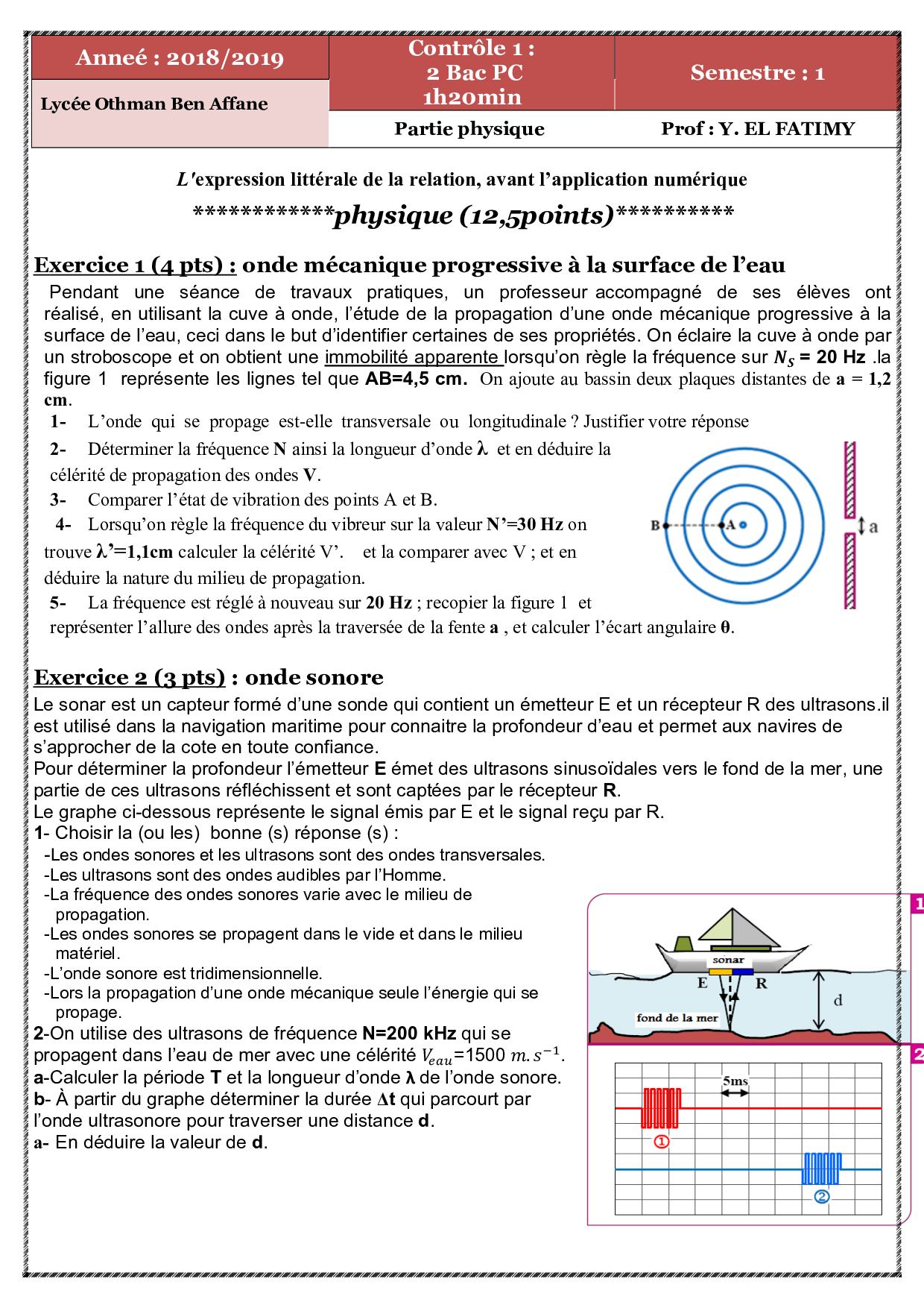 Devoir 1 Modèle 10 - Physique Chimie 2 Bac SPC Semestre 1