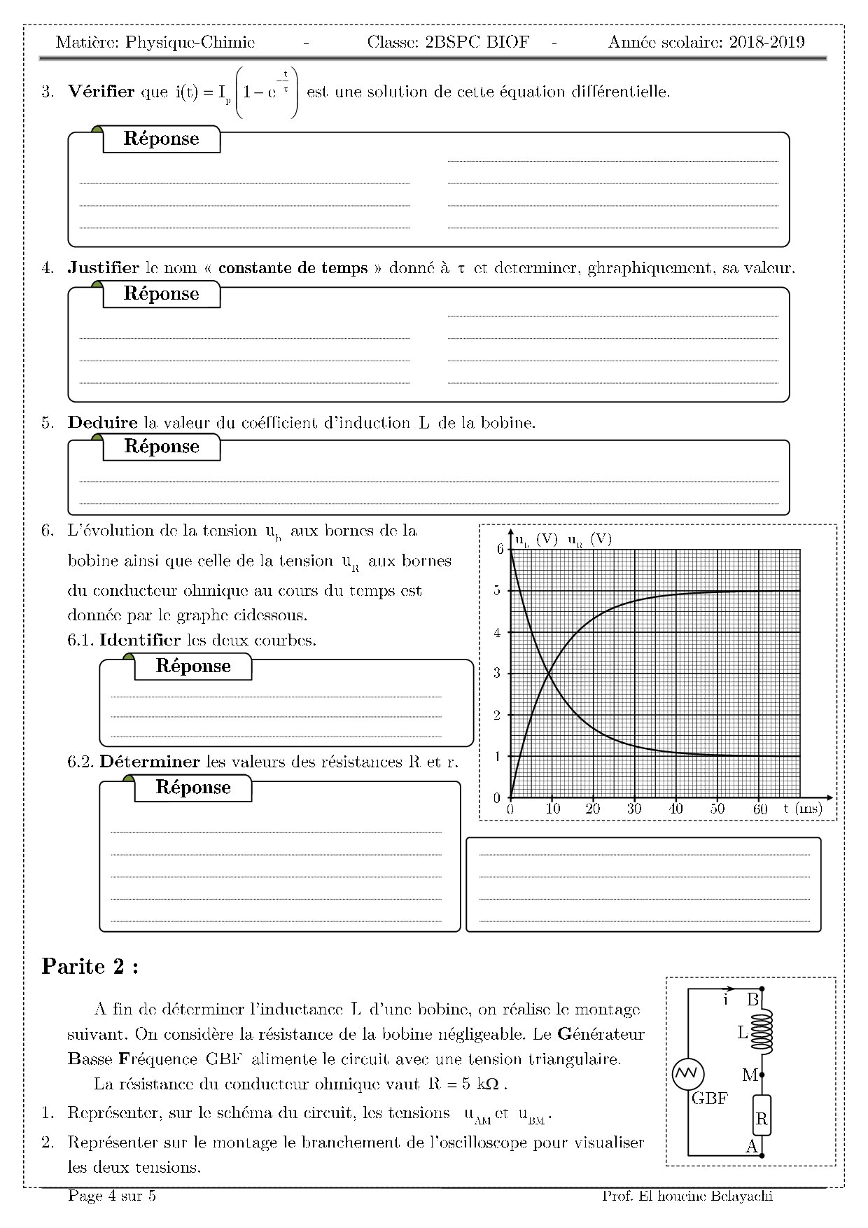 Devoir 3 Modèle 2 - Physique Chimie 2 Bac SPC Semestre 1
