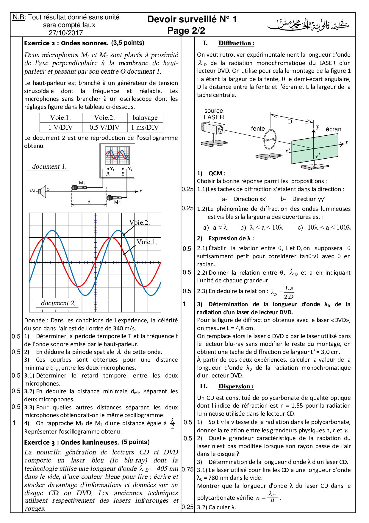 Devoir 1 Modèle 4 - Physique Chimie 2 Bac SM Semestre 1