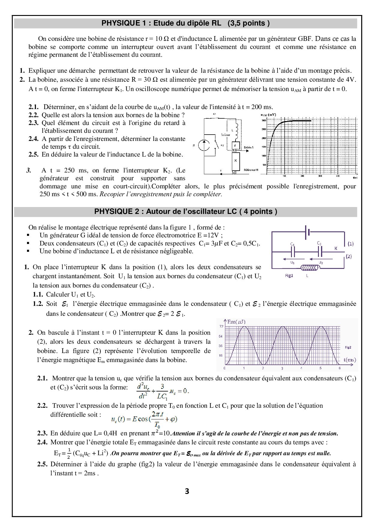 Devoir 3 Modèle 2 - Physique Chimie 2 Bac SM Semestre 1