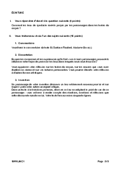 Bac L Français (1ère) Nouvelle-Calédonie 2019 - Sujet