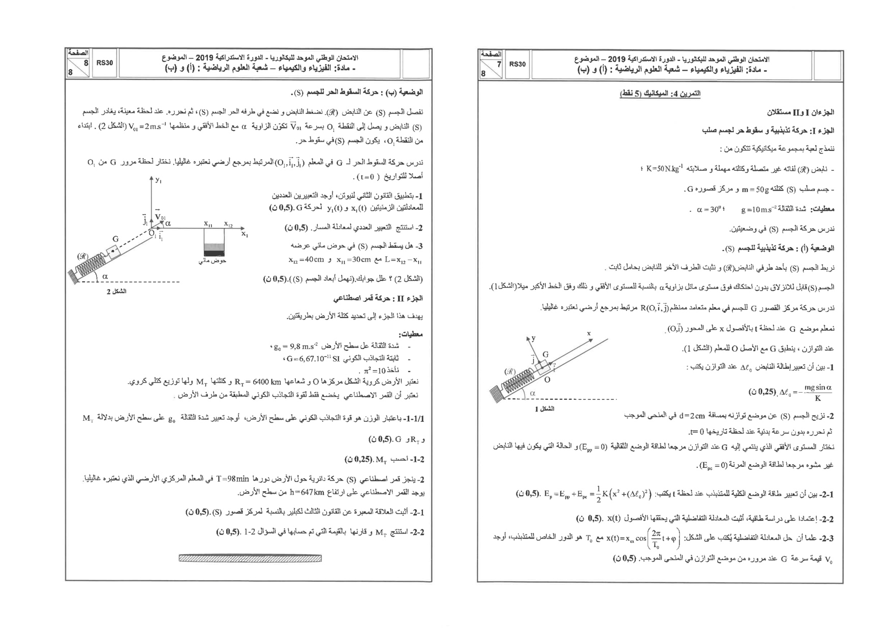 الفيزياء والكيمياء علوم رياضية 2019 الدورة الإستدراكية - الموضوع