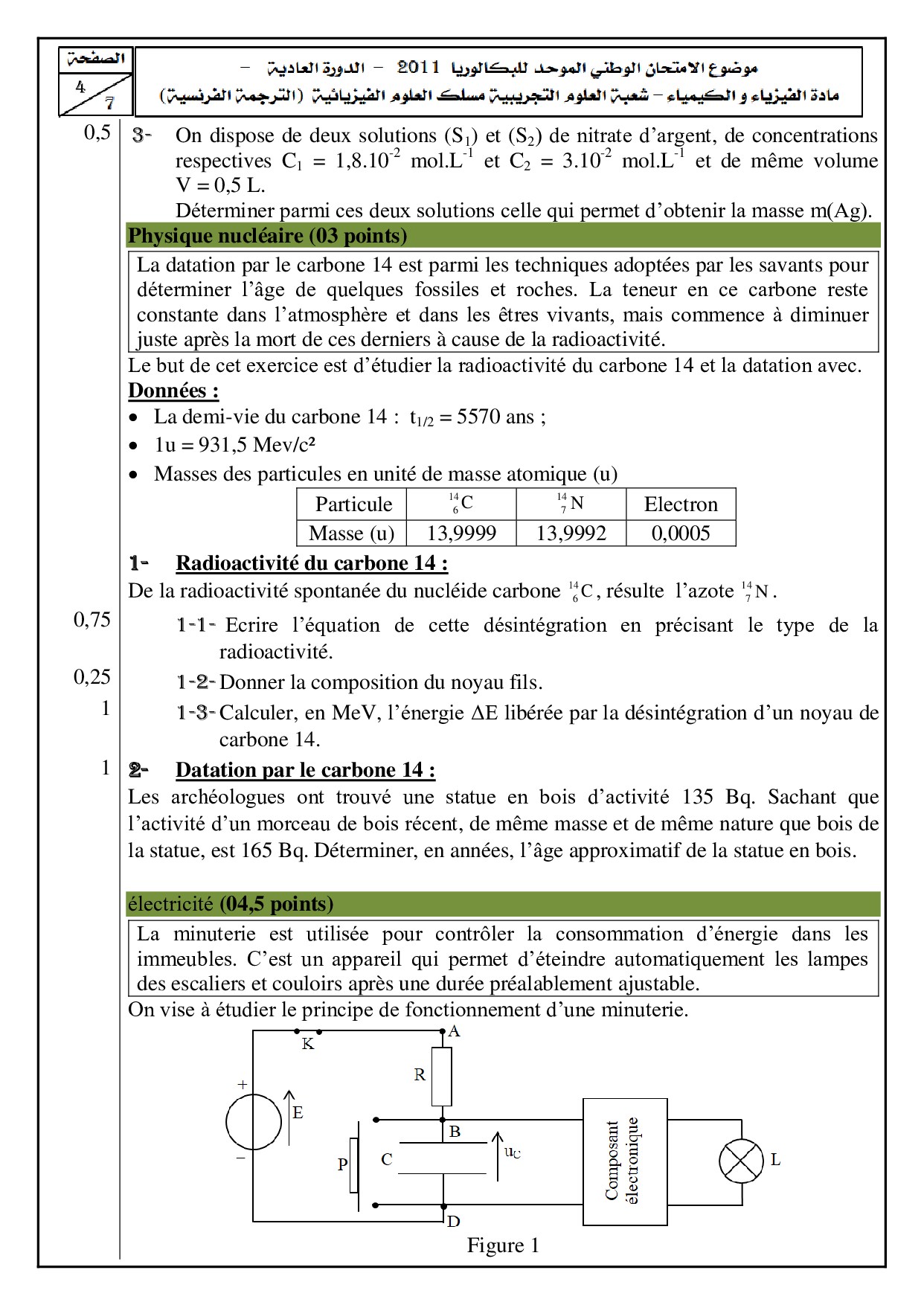 Examen National Physique-Chimie SPC 2011 Normale - Sujet