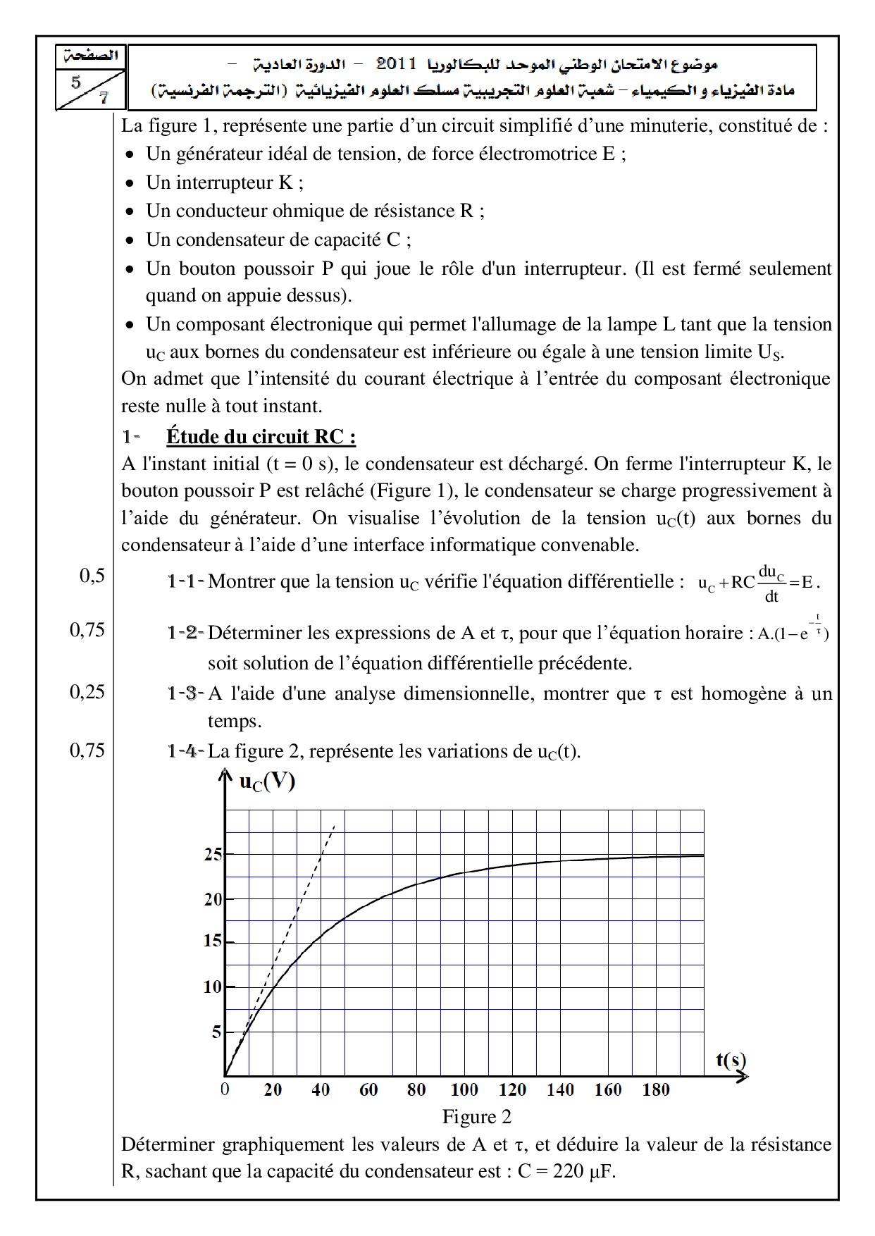 Examen National Physique-Chimie SPC 2011 Normale - Sujet