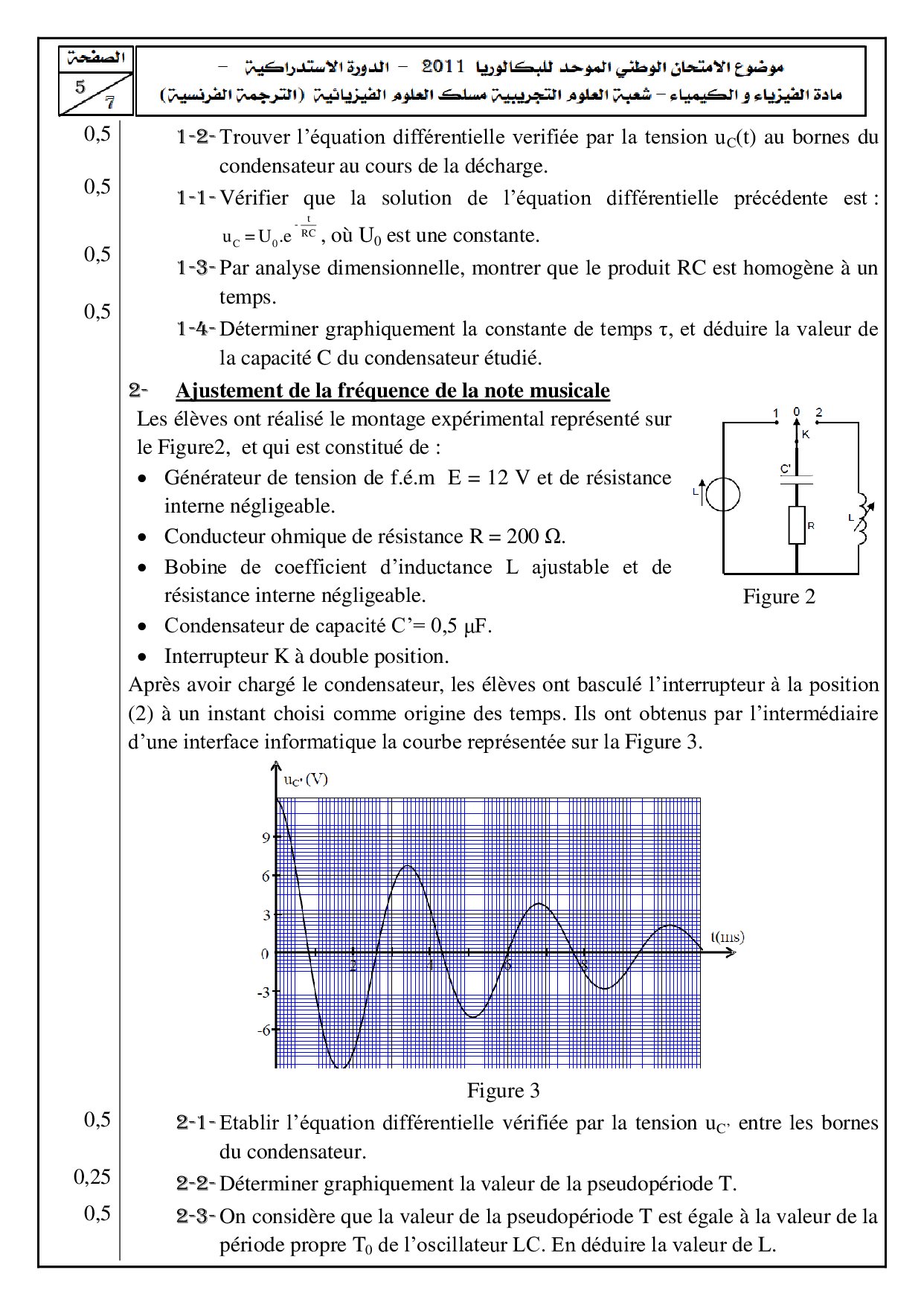 Examen National Physique-Chimie SPC 2011 Rattrapage - Sujet