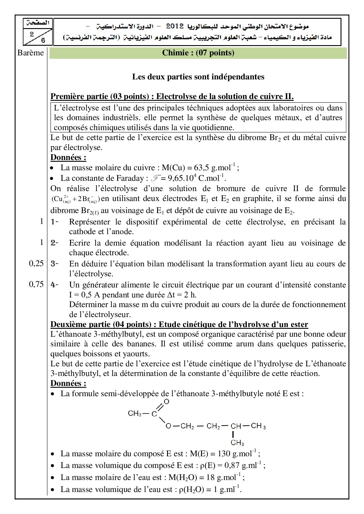 Examen National Physique-Chimie SPC 2012 Rattrapage - Sujet