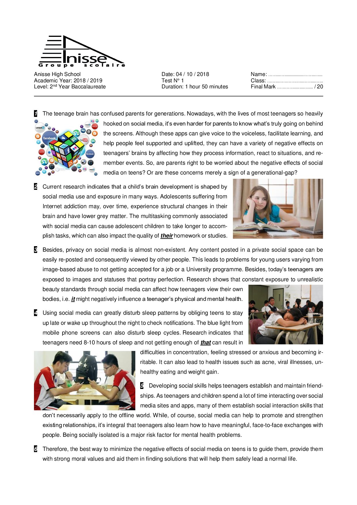 Test 1 Model 2 - English 2 Bac First term