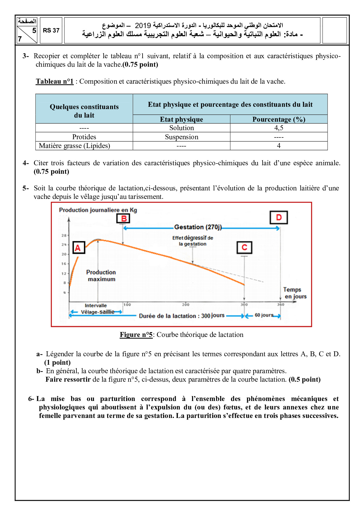 Examen Sciences Végétales et Animales 2019 Session Rattrapage - Sujet