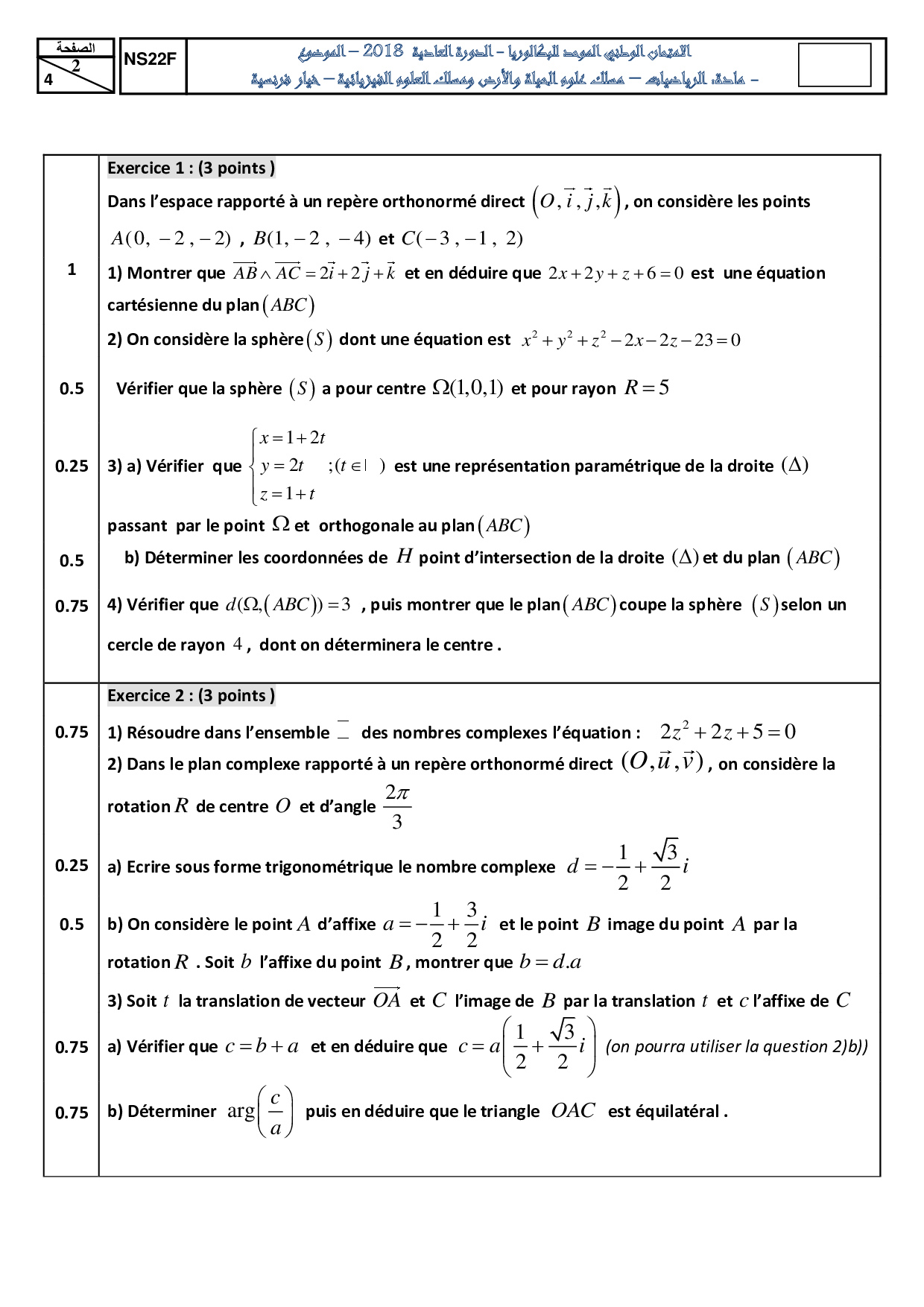 Examen National Maths Sciences et Technologies 2018 Normale - Sujet
