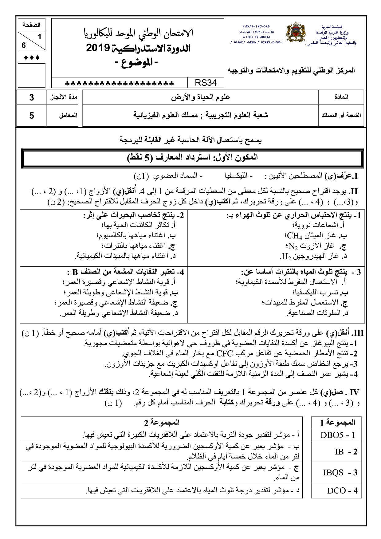 علوم الحياة والارض علوم فيزيائية 2019 الدورة الإستدراكية - الموضوع