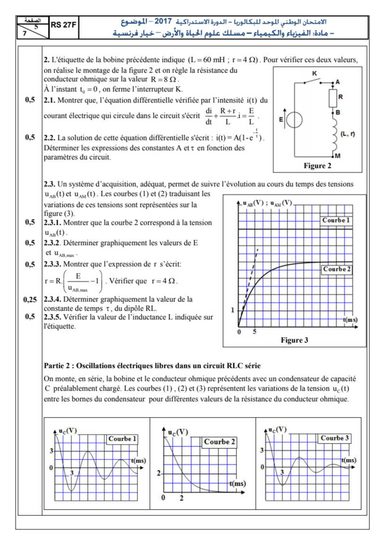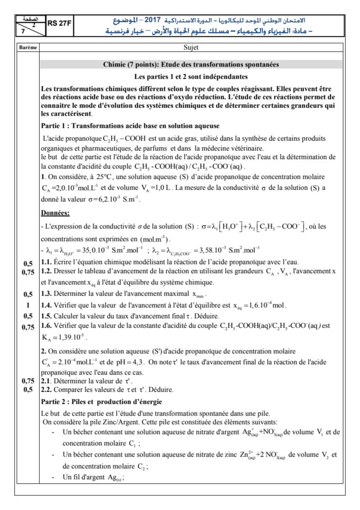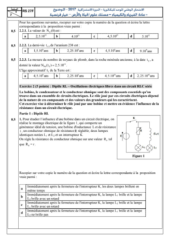 Examen National Physique-Chimie 2 Bac SVT 2017 Rattrapage - Sujet