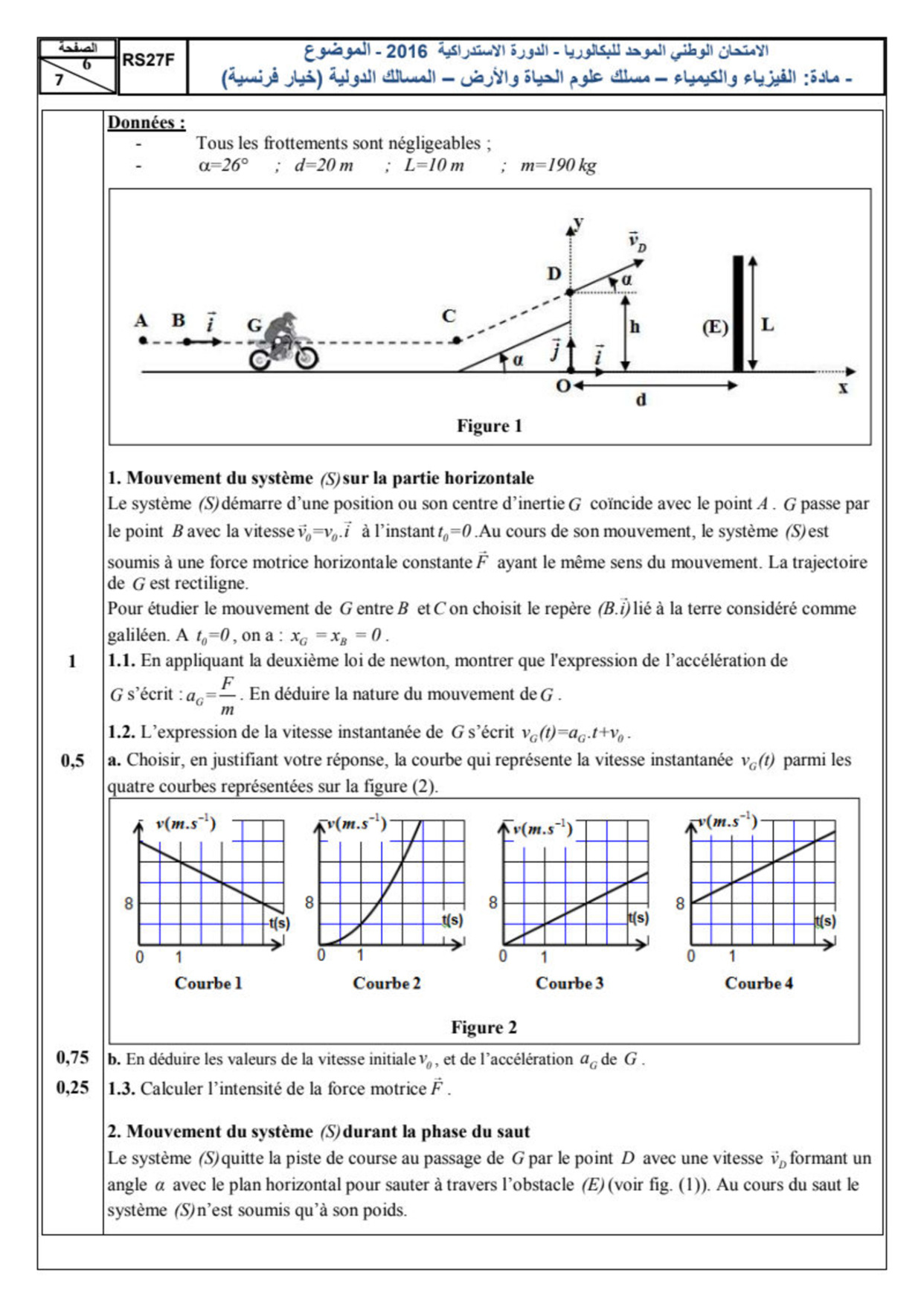 Examen National Physique-Chimie 2 Bac SVT 2016 Rattrapage - Sujet