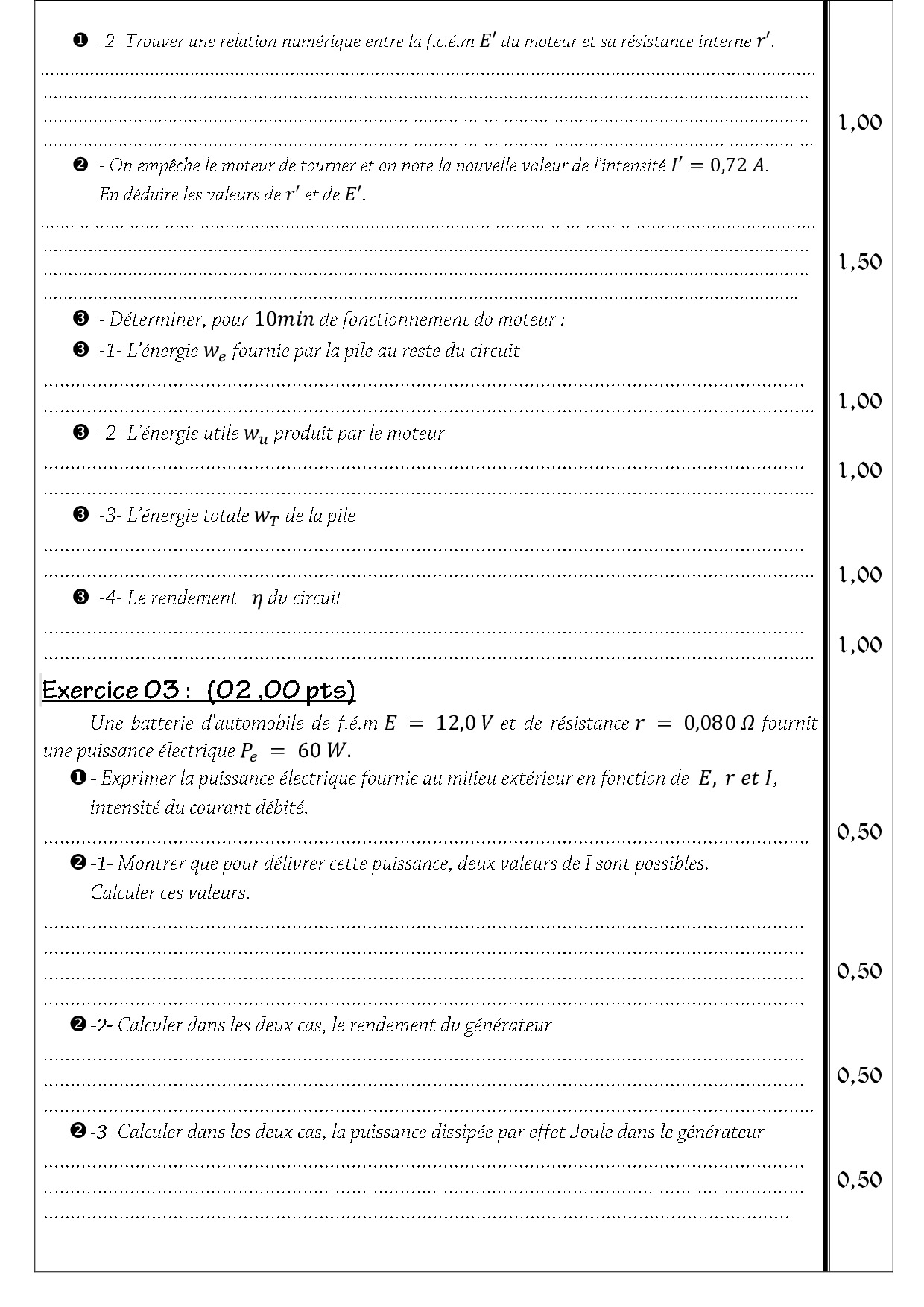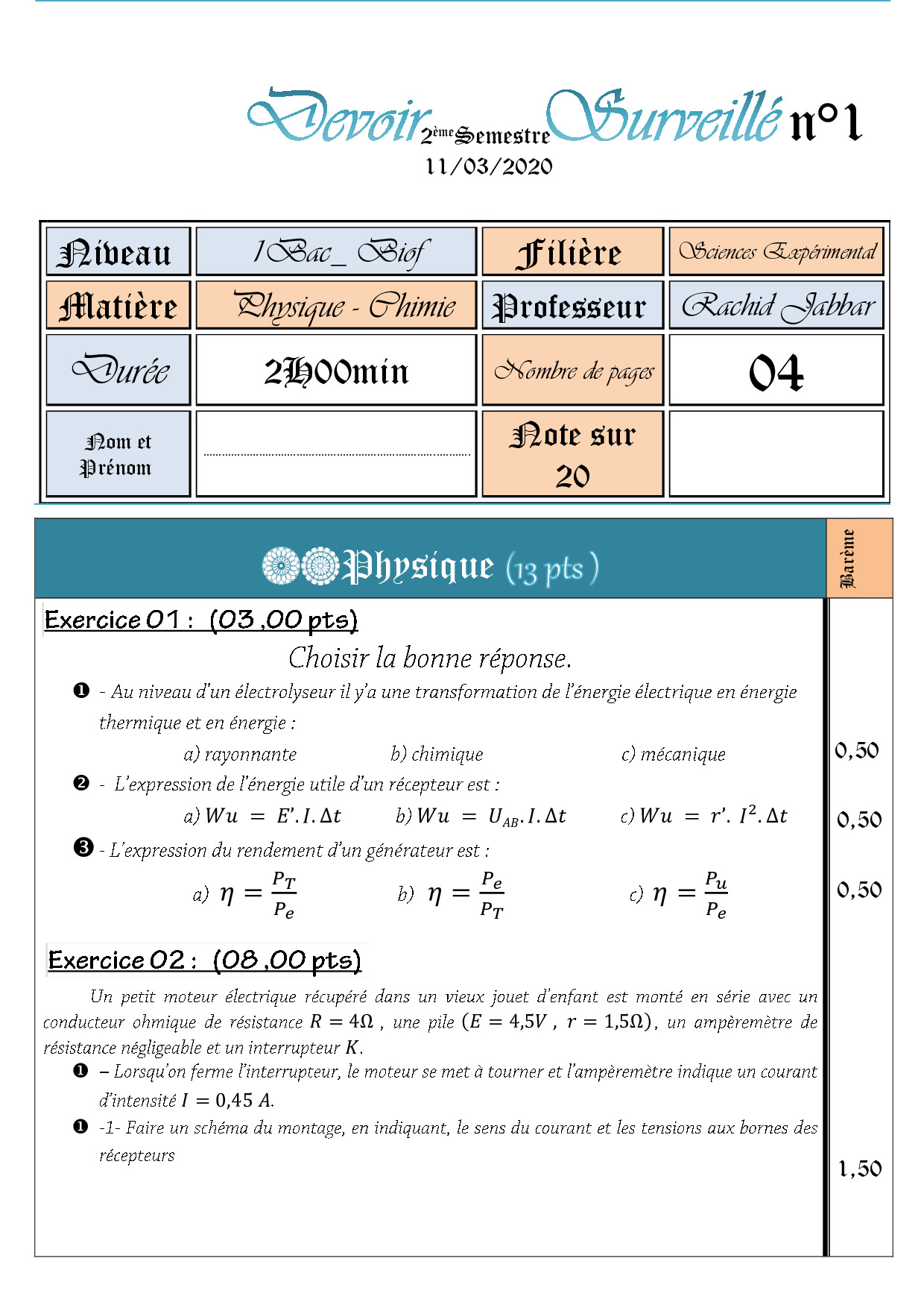 Devoir 1 Modèle 2 - Physique Chimie 1er Bac Semestre 2