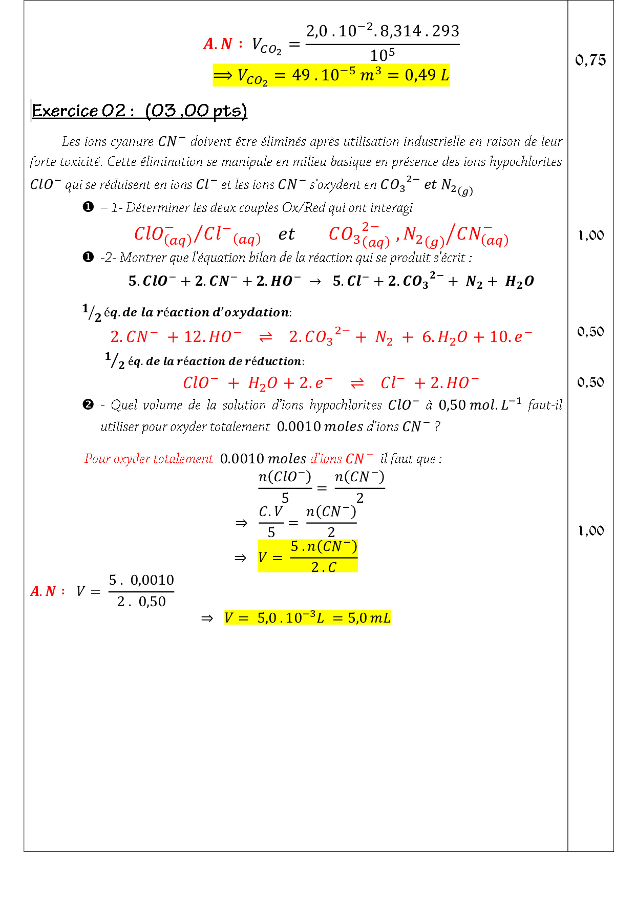 Devoir 1 Modèle 2 - Physique Chimie 1er Bac Semestre 2 (Corrigé)