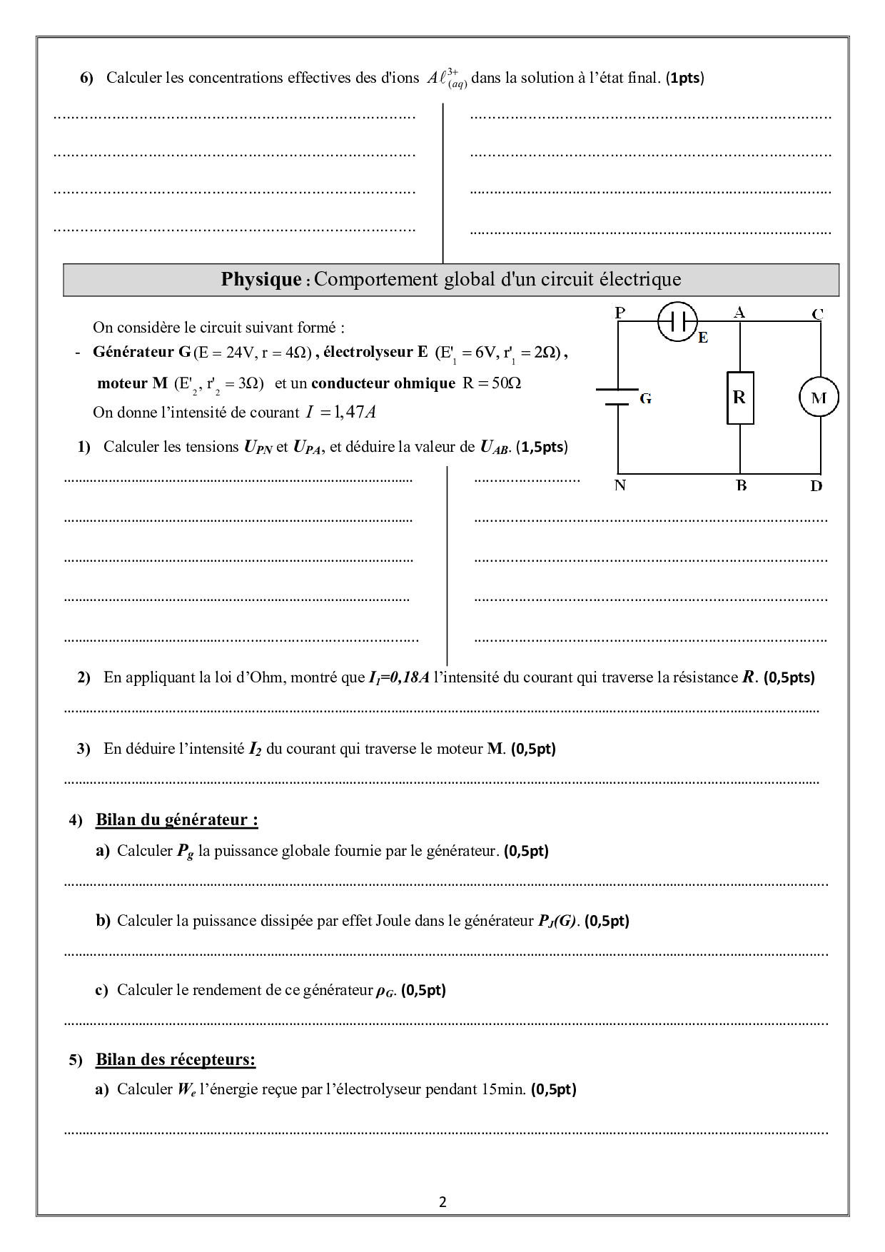 Devoir 2 Modèle 4 - Physique Chimie 1er Bac Semestre 2