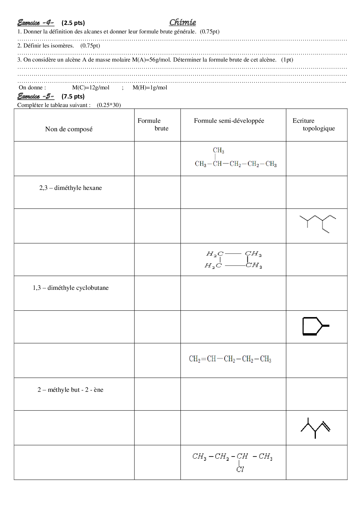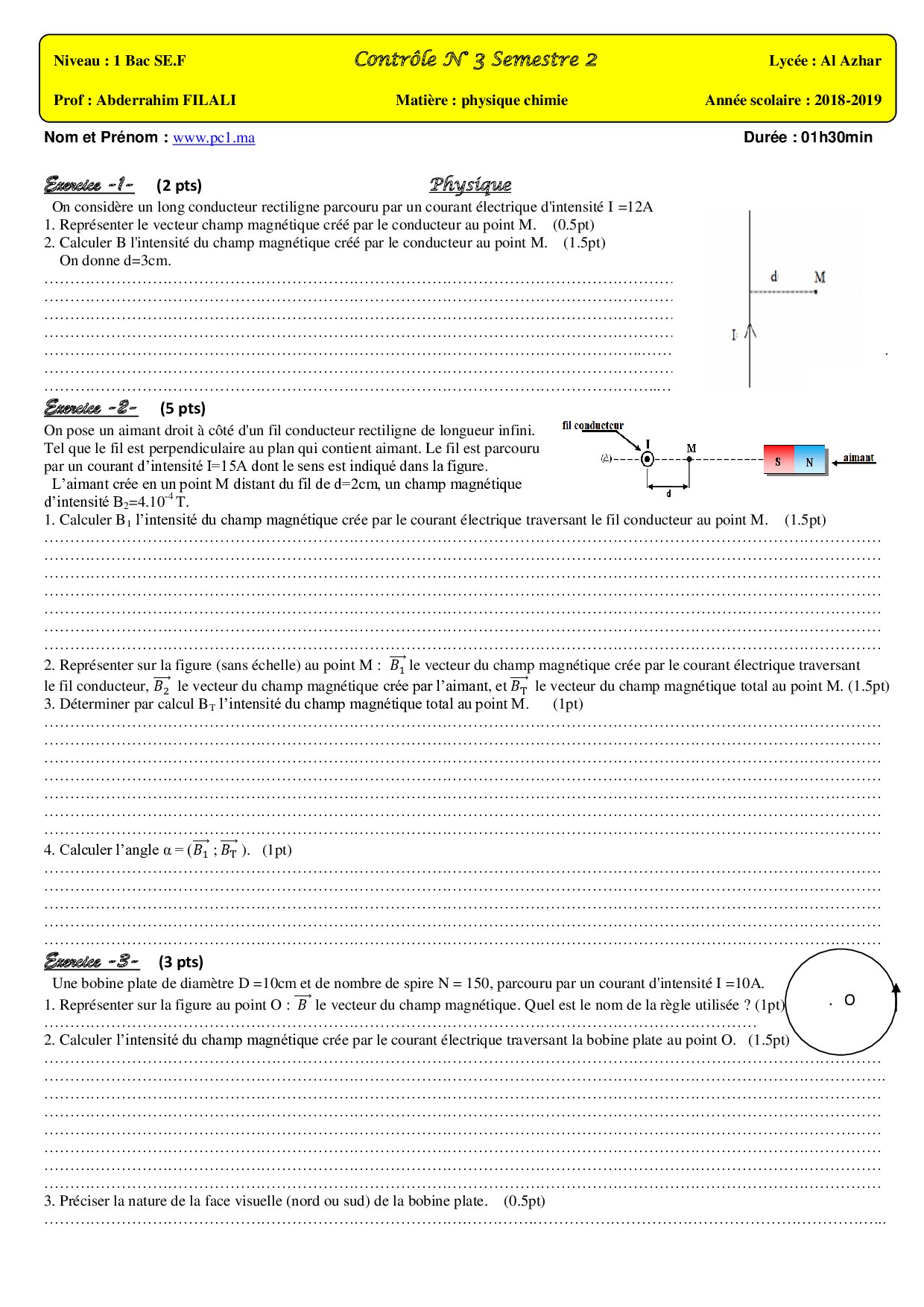 Devoir 3 Modèle 2 - Physique Chimie 1er Bac Semestre 2