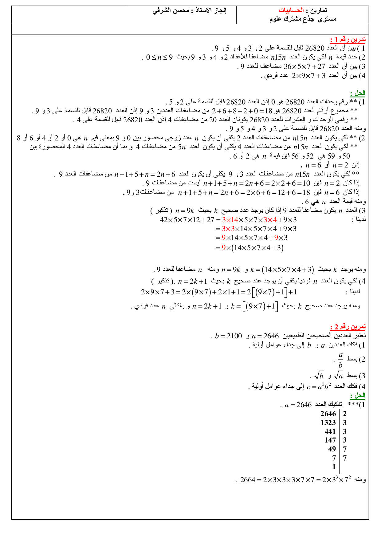 الترتيب في المجموعة IR - تمارين محلولة 2
