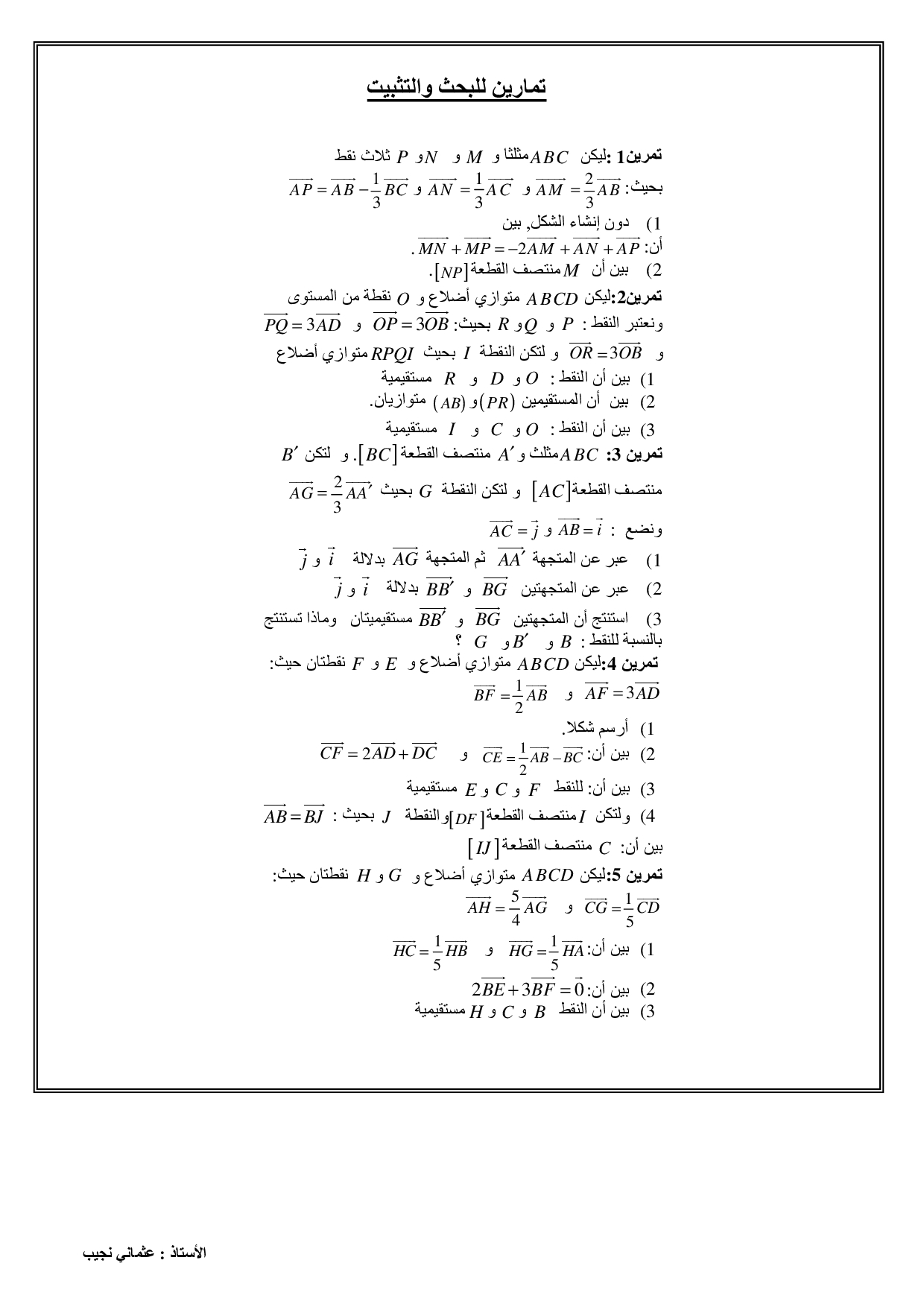 الحساب المتجهي في المستوى - تمارين غير محلولة 3
