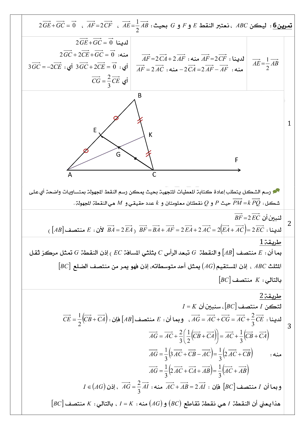 الحساب المتجهي في المستوى - تصحيح سلسلة التمارين 1