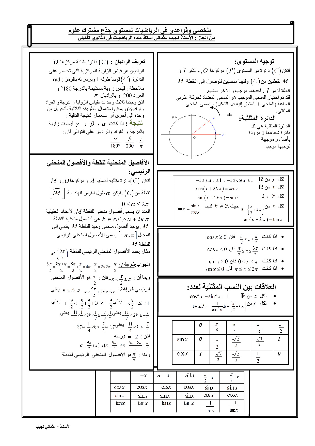 قواعد في الحساب المثلثي - ملخص الدرس 1